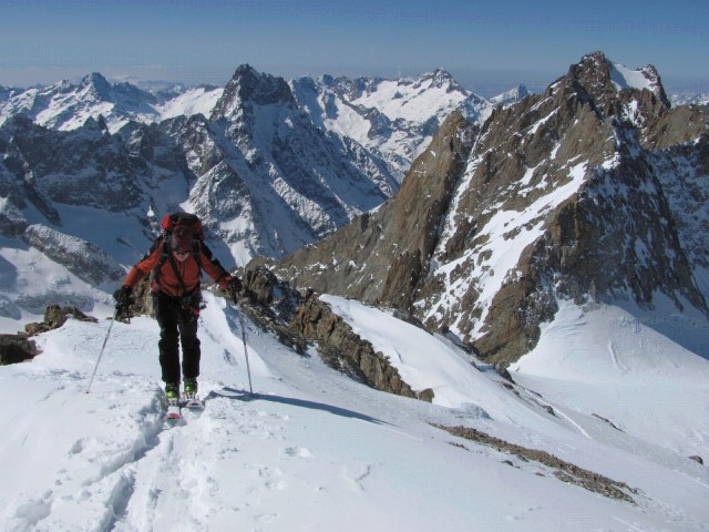 Sohlojen suksilla liikkuva joukko-osasto eli Pirjo ja Jannu harrastivat alppeilua Ranskassa Ecrinsin kansallispuistossa. Alue on varsin suosittu sekä talvi- että kesärandoilukohde ja kansallispuiston lukuisat alppimajat mahdollistavat monenlaisten retkien tekemisen. Parque Nacional des Ecrins on Chamonix:n alueen kaltainen siinä mielessä, että vuoret ovat suht. jylhiä ja alueella on mukava harrastaa kaikenlaista ylöspäin ja alaspäin suuntautuvaa toimintaa suksilla tai ilman.