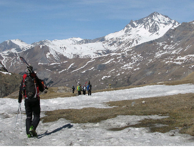 Koska ajankohta oli verrattain myöhäinen (maaliskuun loppu – huhtikuun alku) niin kylillä oli jo kevät pitkällä ja auringon puoleisilta rinteiltä lumet lähteneet. Niinpä randoretki alkoikin siten, että sukset eivät ihan koko aikaa voineet olla jalassa.