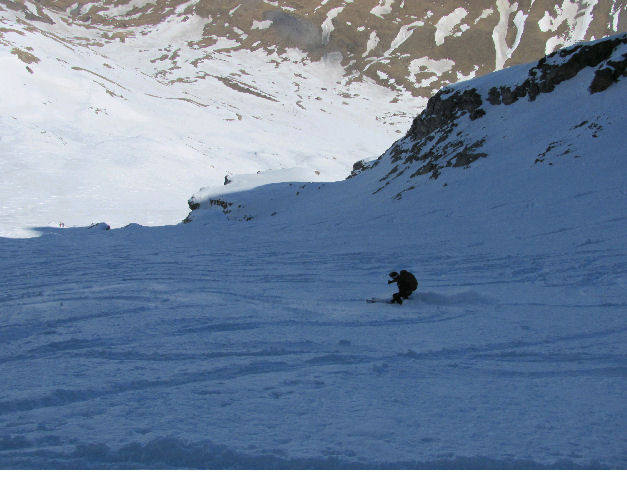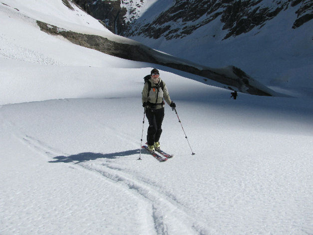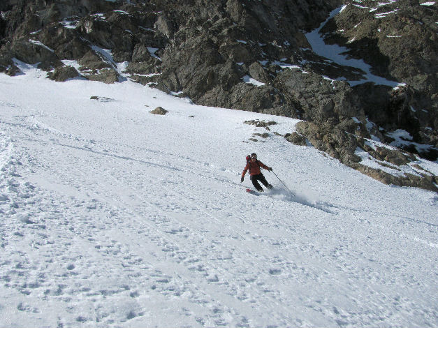 Ylempänä sitten saatiin nautiskella aamun jäänkovasta lumenpinnasta, iltapäivän kesälumesta ja pohjoisrinteillä jopa vielä pakkasella pysyneestä n. 15 cm:n pehmeästä lumesta. Olosuhteet pysyivät koko reissun ajan melko turvallisina. Suurin riski syntyi iltapäivällä auringonpaahteisille rinteille, joissa lumi saattoi pehmetä pohjaan saakka ja siten lähteä liikkeelle.