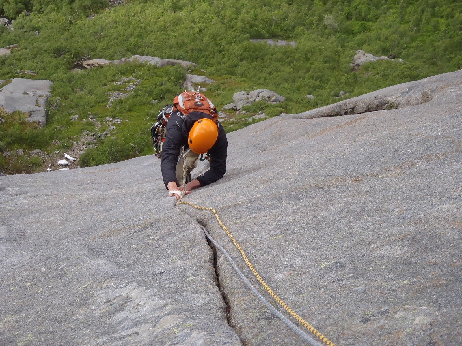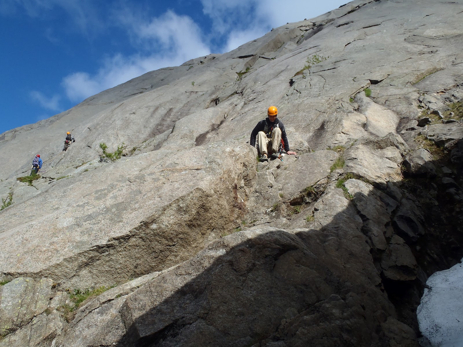 Kiipeily sujui kivasti, hieman tuuli, mutta keli oli siedettävä. Minä liidasin ja Jake keräili kamoja perässä. Tällä kertaa ei jäänyt mitään kallion koloihin, tosin viidenneltä ständiltä pääsi tipahtamaan slingi jatkoineen.