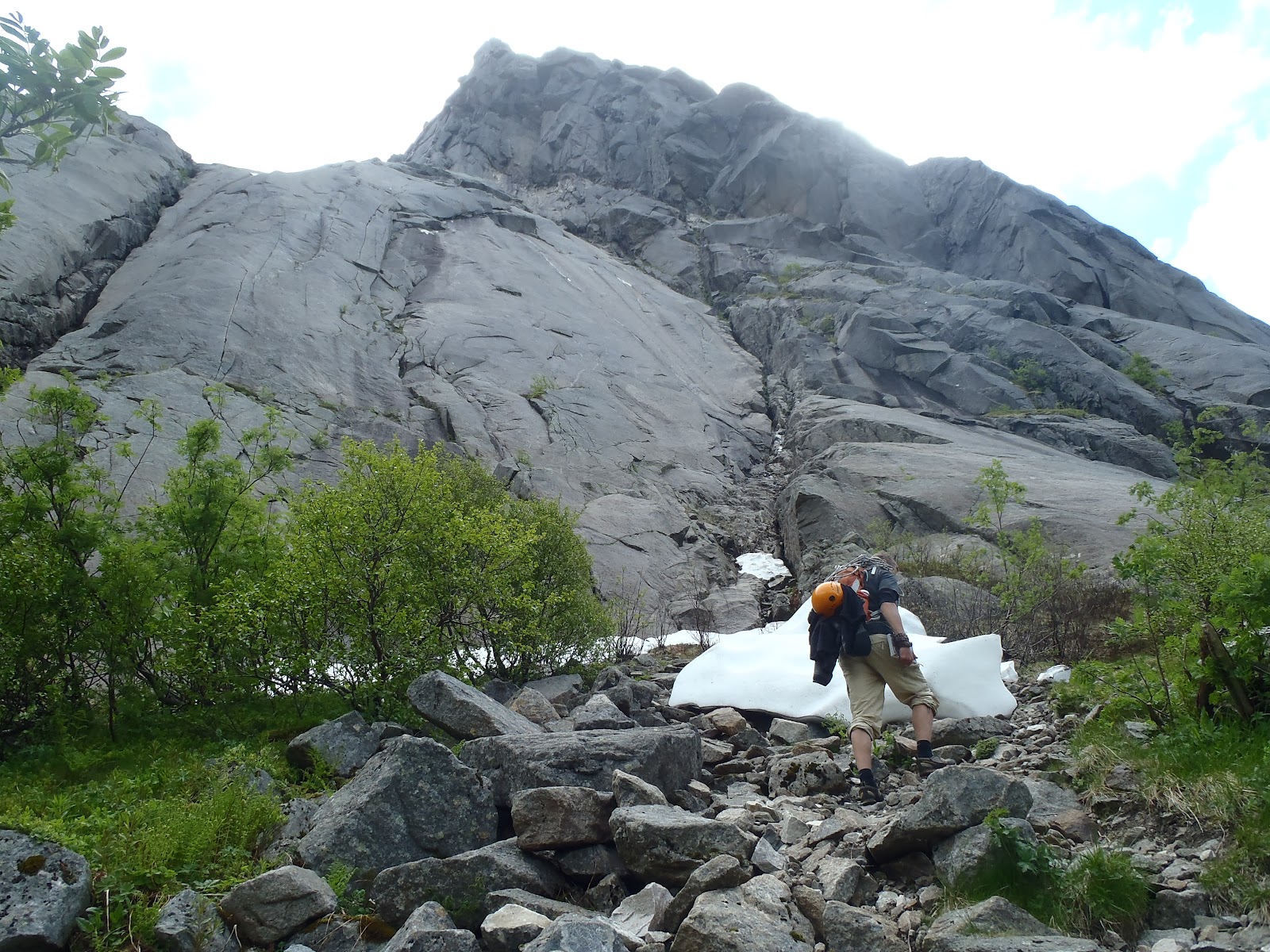Minä ja Jake lähdimme ennen puoltapäivää, ehkä reilustikin, kohti legendaarista Bare Blåbaeriä. Yllättäen saavuimme rauhallisen patikoinnin jälkeen kallion juurelle ensimmäisinä ja pääsimme johtamaan heti perään ilmestynyttä jonoa kohti Bare Blåbaerin huippua.