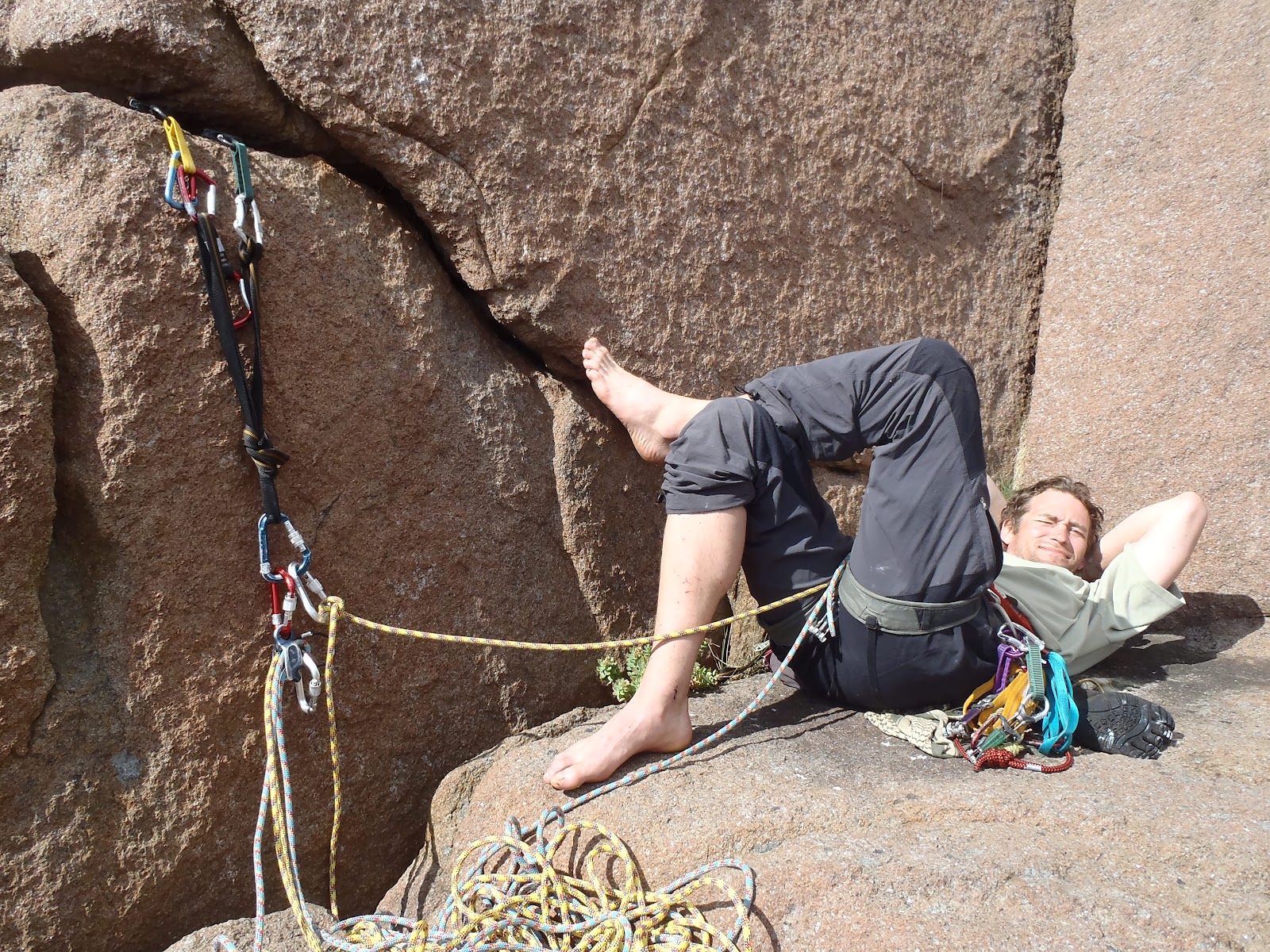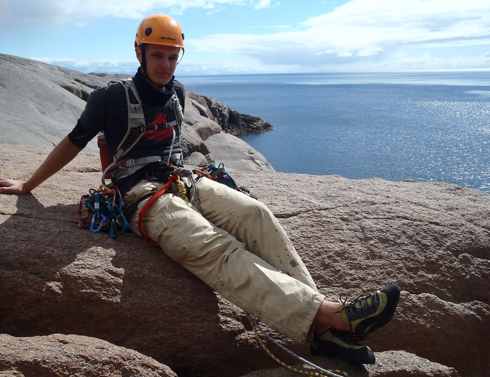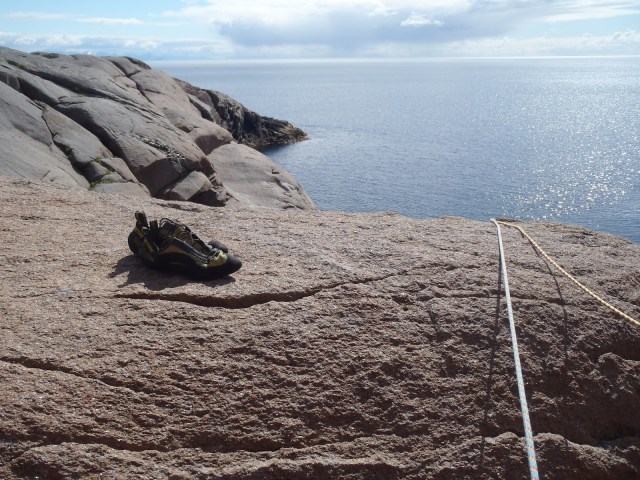 Perjantaina päätettiin Mikon kanssa vetäistä Vestpillaren, joten toiseksi viimeinen päivä otettiin levon kannalta ja tehtiin Jaken kanssa assault-tyyppinen reissu takaisin Paratiisiiin reitille Living in Paradise. Kiipeilykamat päälle, köydet ja eväät kantoon, 5 Fingersit jalkaan ja menoksi…