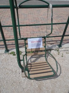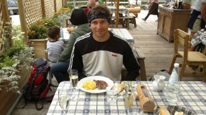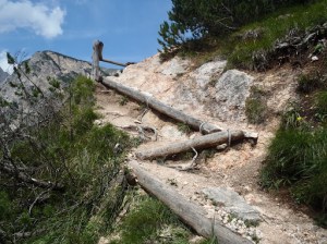 Matkaa oli enää kilometri, hetki pidettiin sadetta (kun sadekamat jäi hotellille, mitä niitä vuorilla mukana kantamaan…) puun alla (joka ei tietysti ole suositeltavaa noin yleisesti ottaen ukkosella…) ja päästiin vähin vaurioin hotellille. Pienen huilin jälkeen käytiin pyörimässä raitilla ja saatiin selville, että ferrata-settiä ei tarvitse ostaa vaan sen saa vuokrata hintaan 5 € / hlö / päivä ja kun se maksaa useasta kympistä yli sataan euroon ja kun sen tarve Suomessa lienee vähäinen, niin eipä tarvinnut kauaa pohtia vuokraako vai ostaako. Suunnitelma oli siis seuraavaksi päiväksi selvä, testaamaan jotain helppoa Via Ferrataa.