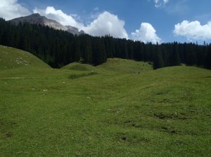 Auton reistailun takia päädyttiin siis viimeisenä Cortina d’Ampezzon päivänä vaeltamaan kohti Malga Ra Stuan vuoristomeijeriä ja sen takan avautuvaa idyllistä alppilaaksoa. Ei ollut kuitenkaan yhtään hullumpi ”joutuminen”. Ensin noustiin ylös korkealle laakson yläpuolella ja sieltä upeiden maisemien äärellä käveltiin Malga Ra Stualle. Sen jälkeen silmien eteen avautuikin yksi idyllisimmistä alppilaaksoista jonka ikinä olen nähnyt! Lehmät laidunsivat ja ihmiset viettivät kaunista kesäpäivää alppiniityillä, marmotat ne vaan pysyivät piilossa koloissaan…