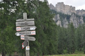 Cortinassa kulutettujen neljän täyden päivän aikana ehdittiin tehdä kolme päivävaellusretkeä. Kohteet olivat Malga Larieto, Cinque Torri ja Malga Ra Stua. Tarkoitus oli käydä viimeisenä vaelluspäivänä katsastamassa Cinque Torrin ohella toinen legendaarinen kiipeilykohde eli Tre Cime, mutta auton moottoriin Cinque Torrin retkellä iskenyt mikä lie polttoaineen syöttö- / päästöjen hallintajärjestelmän vika pakotti valitsemaan vähän lähempänä olevan kohteen. Auto kyllä liikkui, mutta vain matalilla tehoilla. Asian vierestä voi todeta, että Munchenistä saatiin huoltoaika, mutta Muncheniin piti körötellä Cortina d’Ampezzosta matalilla tehoilla ja ottiko päähän! Kulutuskin oli käsittämättömät 6,2 l/100km! Miten ihmeessä Alfa Romeo Mito Quadrofoglie Verde voi pakottaa ihmisen ajamaan taloudellisesti!? Munchenissä päästiin autolääkärille (sillä oli valkoinen lääkärin takki ja stetoskooppi, ehkä, stetoskooppia ei nähty, mutta varmaan sekin löytyi) ja lääkäri buuttasi jonkun tietokoneen ja tyhjensi kovalevyn ja jo taas Mito lähti kulkemaan iloisesti. Kummallisia nämä nykyautot.