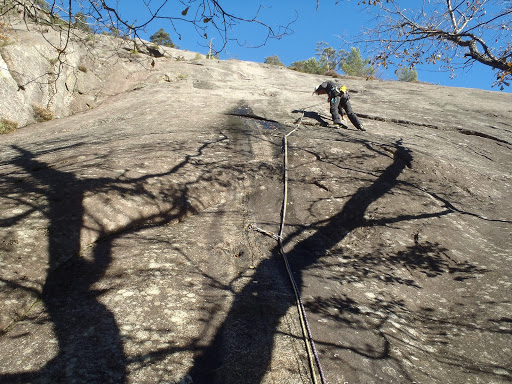 Kolmannella kp:lla pultteja oli enää kaksi, muuten mentiin trädiä. Meidän käsityksen mukaan loppureitti piti olla trädiä, mutta ei se sit lopulta ollutkaan. Kolmas kp vaati jo vähän ponnistuksia Mikolta liidissä, ne ehkä olisivat olleet reitin kovimmat ponnistukset, jos homma olisi mennyt ihan täysin putkeen, mutta ei siinä ihan niin käynyt.
