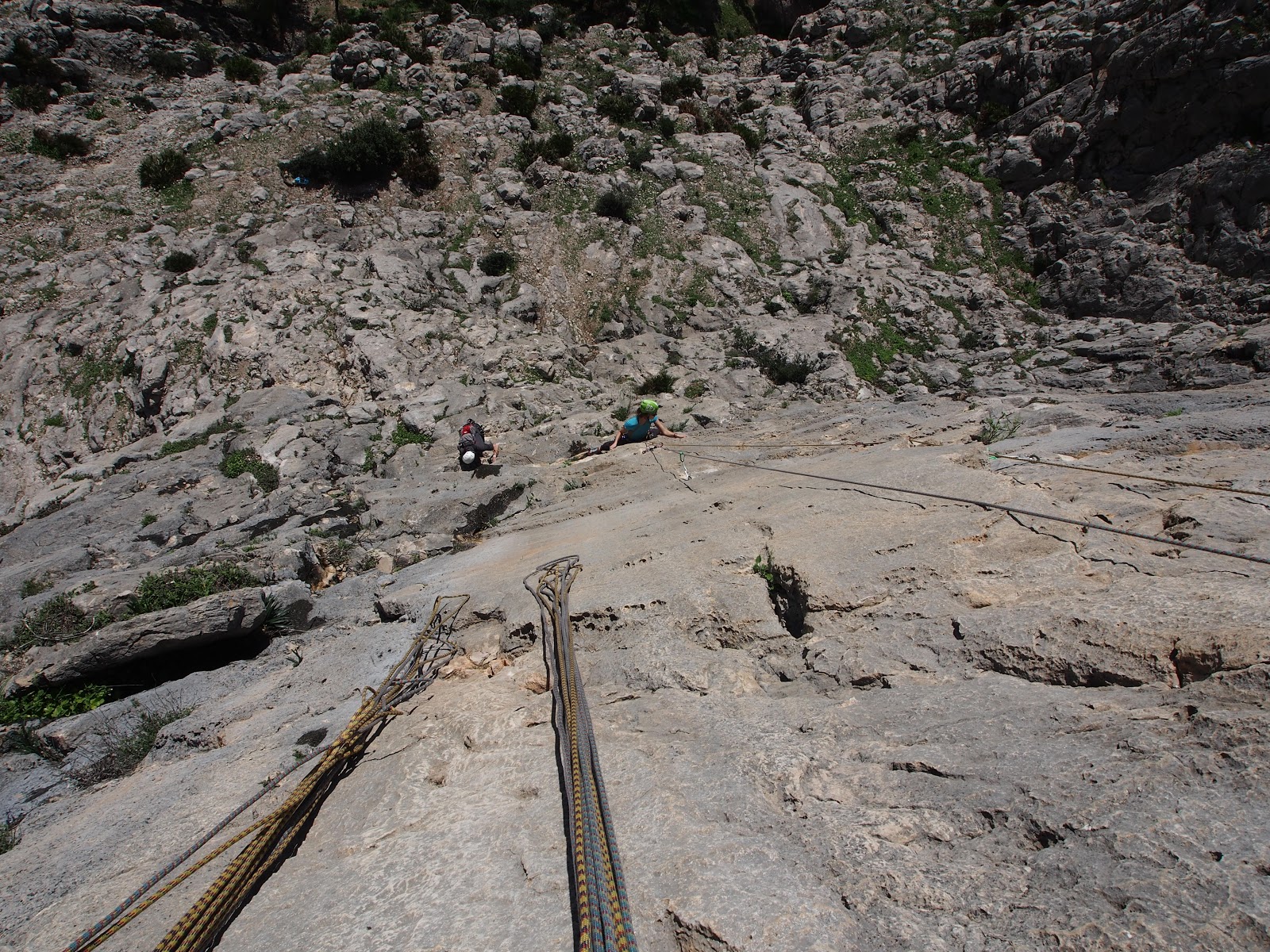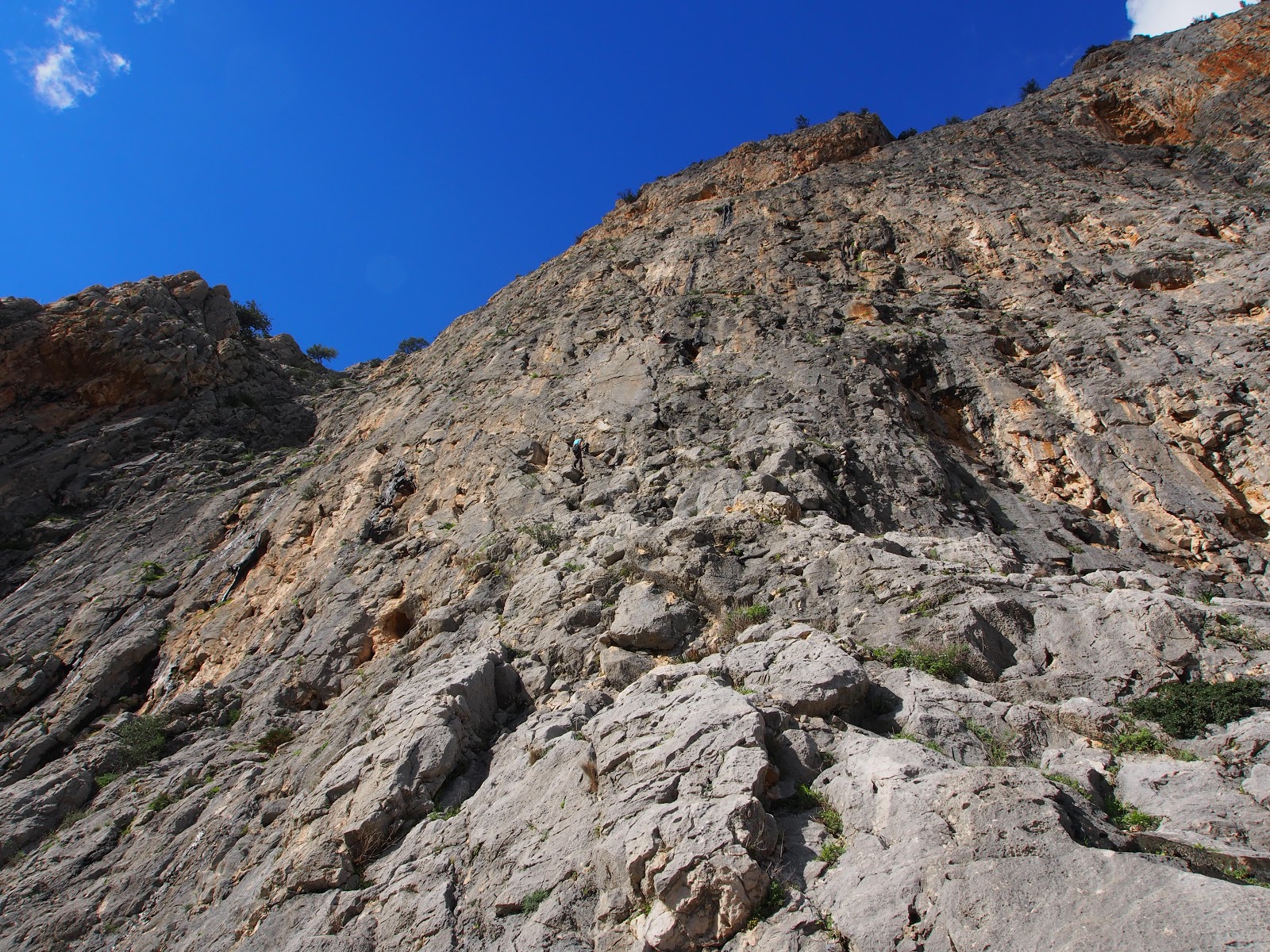 | Tulossa takaisin alas. Kalkkikiviseinistä on vaikea saada nättejä kuvia. Aina saman näköistä louhikkoa vaikka tuokin reitti tuntui niin tasaiselta kiivetessä. |
