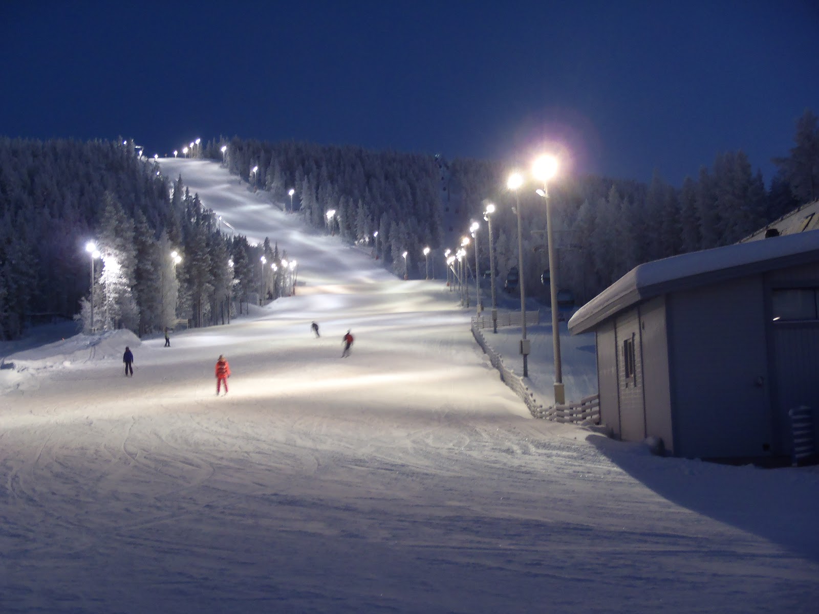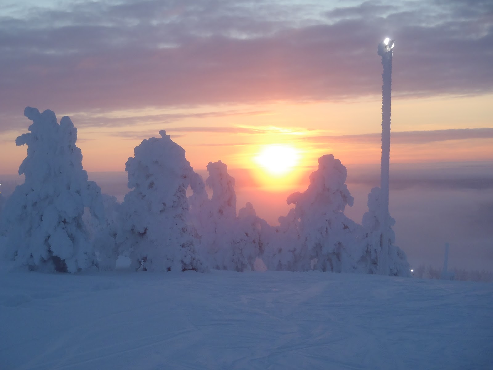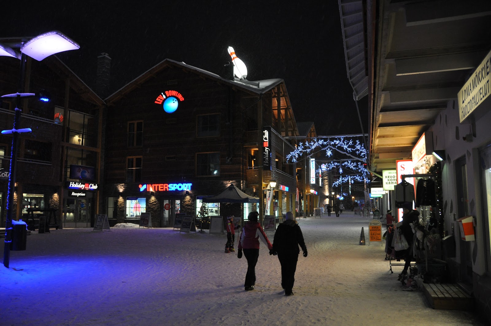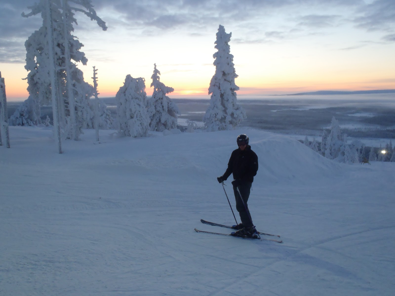 Perillä odotti tuttu ja turvallinen Lapin kaamos. Pimeäähän se on, mutta rauhallinen luonto, upeat karut maisemat ja runsas lumi tarjoavat kuitenkin aivan erilaisen tunnelman ja virikkeellisemmän talviympäristön kuin Helsingin kirkkaasti valaistut kadut. Ja jos lumiharrastukset alkavat väsyttää, niin Levin uusi kylpylä tarjoaa loistavan tilaisuuden nauttia erilämpöisistä vesistä, saunoista ja poreista jopa ulkona! Neljä päivää meni aivan liian nopeasti, mutta onneksi Lappiin pääsee helposti takaisin, ehkä sitten keväällä taas.