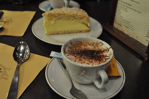 | Tarte Tropezienne ja kahvi. |