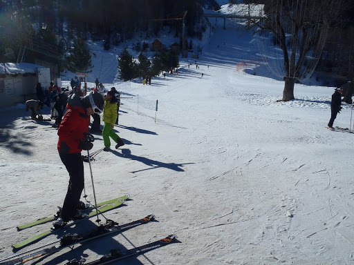 Aamu aukeni taas kauniina ja kirkkaan ja lähdimme aamiaisen jälkeen kohti Skiset-nimistä suksien vuokrauspaikkaa. Jo jonkin matkaa ovelta tuli selväksi, että Brigitten ehdotuksessa suksien ja monojen vuokraamisesta illalla oli vinha järki, muutama muukin pääosin ranskalainen matkailija oli päättänyt tulla viettämään vuoden vaihdetta Auroniin ja myös vuokraamaan suksia. Siinä sitten jonoteltiin ja lopulta saatiin kamat. Vielä piti saada hissiliput ja taas jonotettiin…nekin olisi muuten saanut Keycardille etukäteen netistä…