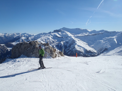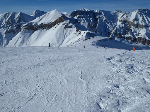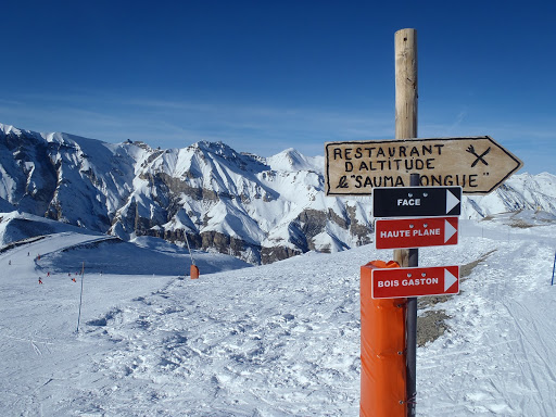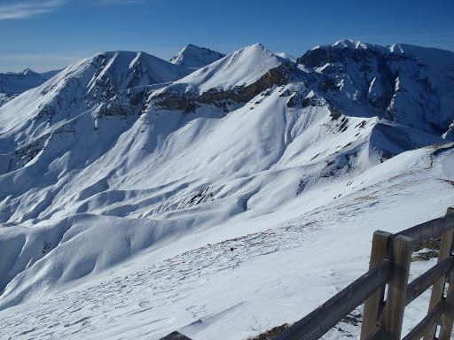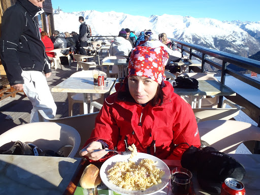 Mutta maisemat oli upeat ja rinteet oikein mukavia, mitä nyt liikaa ihmisiä. Aurinko siis paistoi ja pakkasta varmaan muutama aste ylhäällä melkein 2500 metrissä. Kun olimme myöhäisellä lounaalla, Brigitte laittoi viestin, että ei jaksa enää työpäivän päälle laskea vaan lähtee lämmittelemään kylpyyn, mutta se ei sinänsä haitannut, kyllähän me laskea osataan, vaikka reittien hakeminen välillä olikin nimenomaan hakemista… Seuraavatkin Auronin laskupäivät sujuivat mukavasti, mitä nyt uudenvuodenpäivänä vähän pyrytti.
