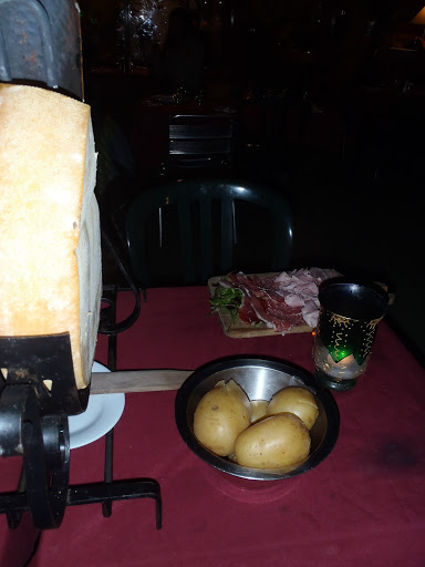 Vietimme Auronissa myös vuodenvaihteen. Uuden vuoden aattona päätettiin syödä ulkona, no idea ei välttämättä ollut hyvä ja lopulta päädyttiin syömään melko konkreettisesti ulos. Kylän muutamasta ravintolasta osa oli kiinni ja osassa oli joku yksityistilaisuus ja loput sitten aukesivat epämääräisesti pitkin iltaa, mutta hyvin myöhään joka tapauksessa. Pitkän haeskelun jälkeen huomattiin, että yksi kylän ravintoloista näyttäisi olevan auki, mutta syödä piti terassilla, eli telttamaisessa tilassa käytännössä ulkona! No vieressä puhalteli kaasulämmitin lämpöä ja ruuaksi tilattiin raclettea, joka lämmitti toiselta puolelta, mutta kylmähkö illallinen se joka tapauksessa oli. Toisaalta onhan se aina hyvä, että tuollainen juhlaillallinen jää edes jotenkin mieleen ja oli se raclettekin toki hyvää.