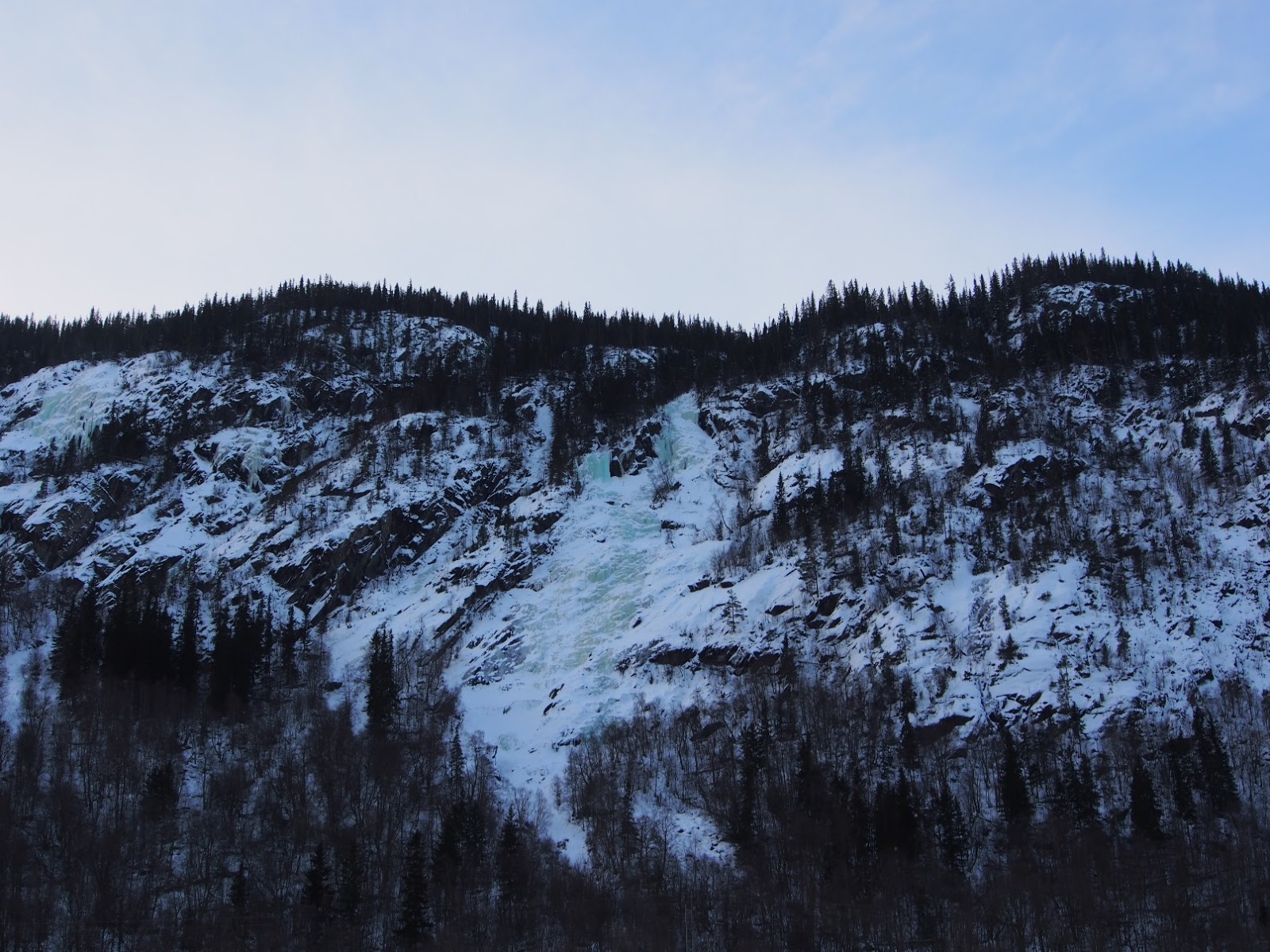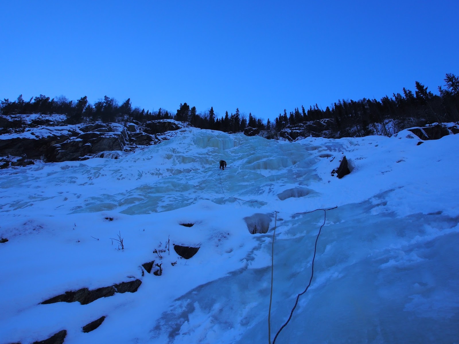 Meinasin nukahtaa äsken, mutta en nukahtanutkaan. Takana on ulkoilupäivä. Vedettiin Pirjon kanssa kuuden kp:n verran helppoa jäätä.Siis pääosin sellaista portaikkoa. Putouksen nimi oli rjukanilaisittain osuvasti Fabrikkfossen. Jonkinlainen kaikenkansan klassikko. Meillä tavoitteena oli päästä hakemaan tuntumaa ja kun kyseessä on itselle ensimmäinnen monen köyden jääreitti, niin ei mitään liian mahtipontista edes uskalla suunnitella.