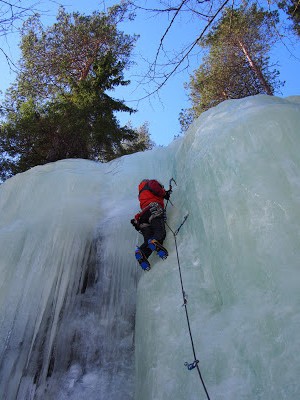Oli erinomaisen onnistunut jääkiipeilypäivä, kaikki taisivat saada mitä hakemaan tultiin. Oli hienoa päästä vielä kerran Valkealan putouksille, ja kaipa niille näillä keleillä voisi palata vielä ensi viikonloppunakin. Alkaa vaan olla sen verran kova into päästä vaihteeksi kallioille, että tämä reissu taisi ainakin itselleni jäädä kauden viimeiseksi jääkiipeilypäiväksi. Tämä talvi on ollut poikkeuksellisen hieno ihan kaikkia talviurheilu-aktiviteetteja ajatellen, ei voi kuin toivoa samanlaista ihmettä ensi vuodelle. Omat saavutukset jääkiipeilyn suhteet jäivät vielä hyvin vaatimattomiksi, mutta tältä pohjalta on hyvä ponnistaa kohti seuraavaa kautta, ja toivottavasti myös vielä näkemättä jääneitä Rjukanin jääputouksia!