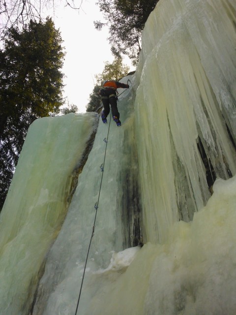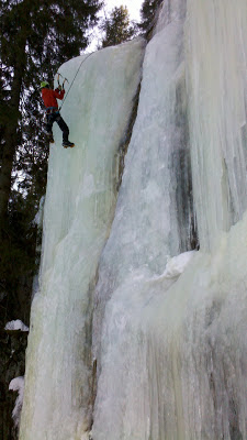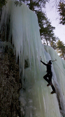 | Oli lämpötilan puolesta poikkeuksellisen leppoisa jääkiipeilypäivä, ei paljon edes näpit palelleet |
