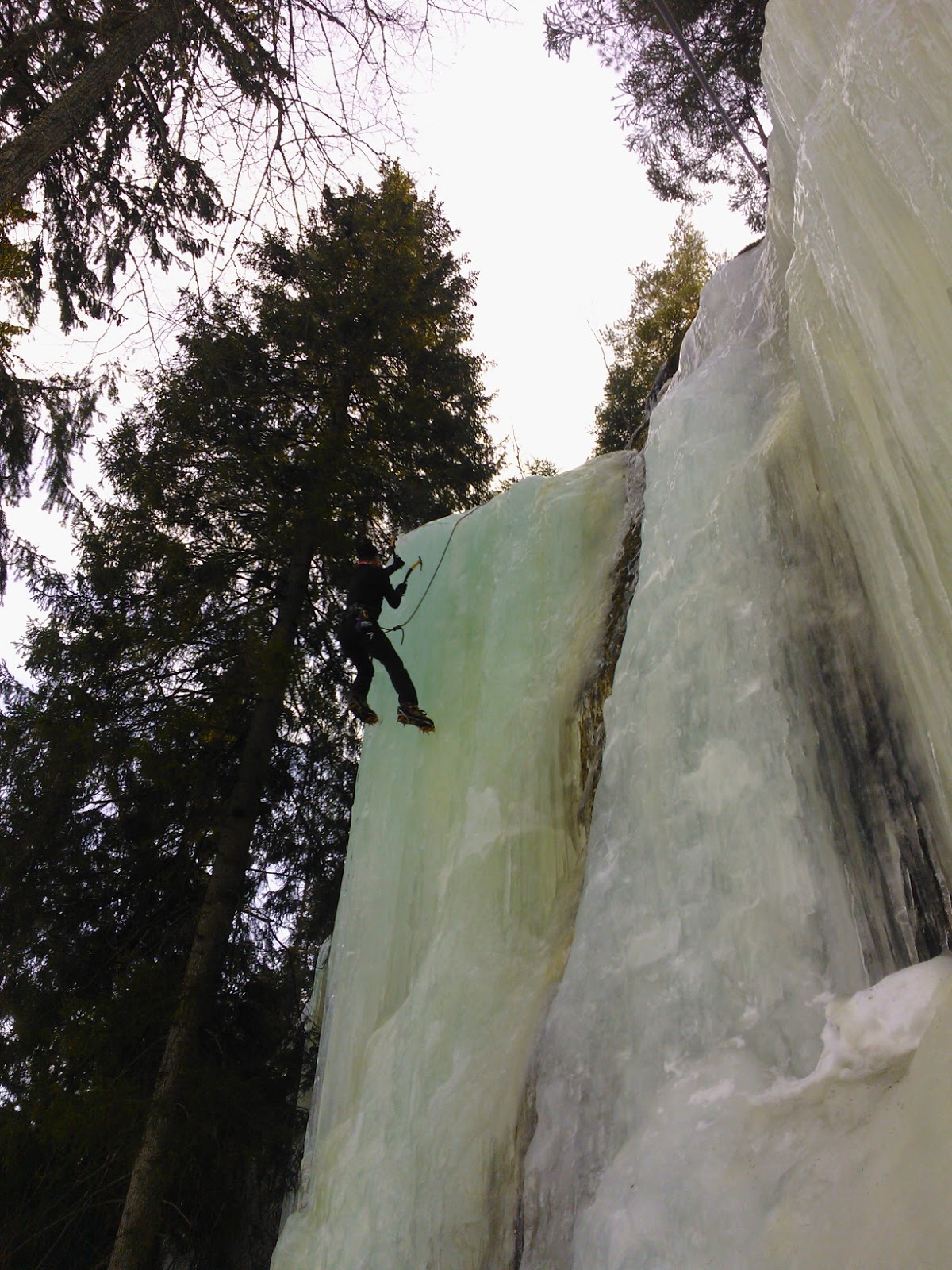 Harvemmin sattuu kohdalle sellaisia viikonloppuja, joina Suomessa on mahdollista kiivetä sekä kalliota että jäätä. Pääsiäisenä tällainen utopia kuitenkin toteutui, ja kalliokiipeilykauden avauksen jälkeisenä päivänä suuntasimme vielä kerran Valkealaan katsastamaan olisiko jääputouksista vielä jotain jäljellä. Valkealaan saavuttuamme totesimme että olihan niitä, jopa reippaasti enemmän kuin yhdessä päivässä ehtii kiivetä. Jääkin tuntui olevan hyvinkin laadukasta, joten mitäpä siinä sitten muuta kuin kamat kiireesti päälle ja kiipeämään.