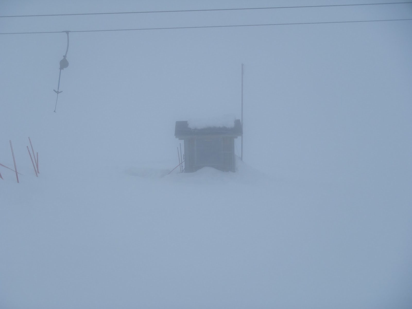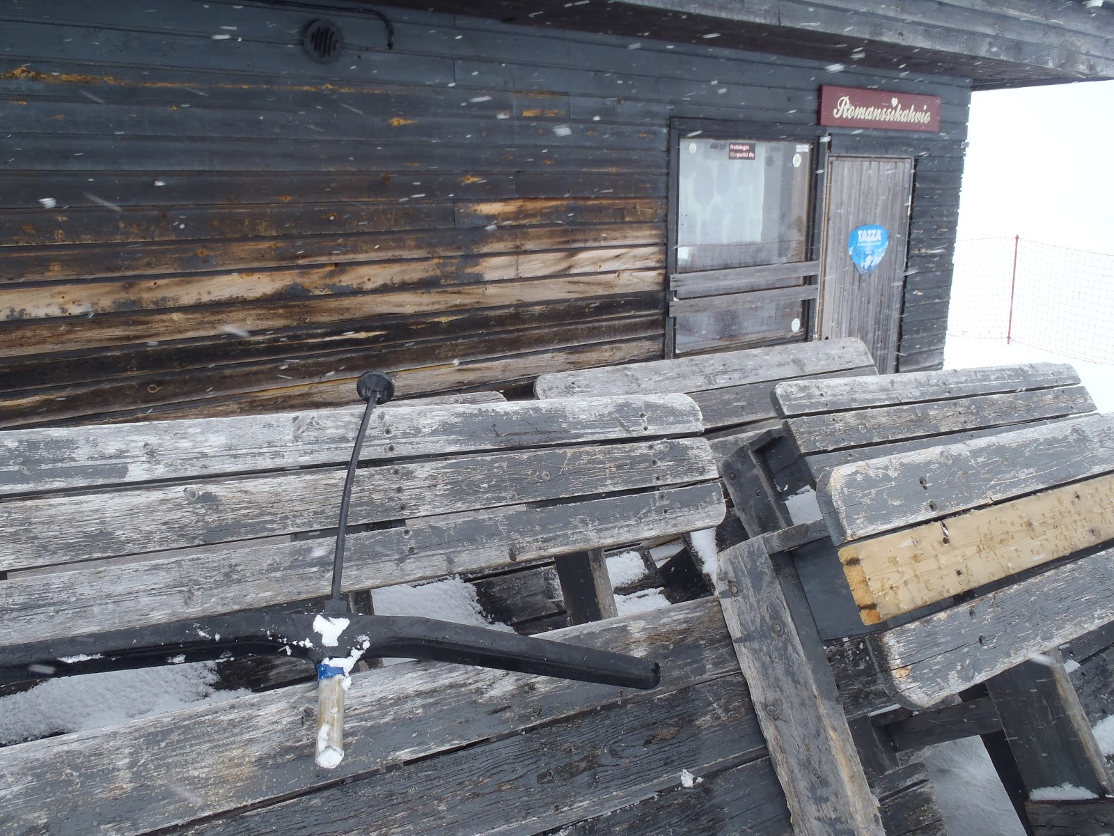 Viimeiset kaksi päivää ”sulkivat ympyrän” tämän talven laskettelujen osalta. Kausi alkoi Levillä tuulessa ja tuiskussa ja päättyi Pallakselle tuuleen ja tuiskuun. Ainoa ero oli oikeastaan pakkanen, joulukuussa pakkanen paukkui melkein parissa kympissä ja nyt oltiin jo nollan lähellä. Kahtena viimeisenä päivänä Romanssikahvilan hissin yläasemalta oli käytännössä mahdoton laskea alas mitenkään järkevästi, täydellinen ”white out”. Oli todella vaikea tajuta, että onko liikkeessä vai ei, alas pääsi varovasti hivuttaen rinteen reunakeppejä seuraillen. Itse asiassa viimeisenä päivänä ylempi hissi oli jo suljettukin. Onneksi päähissi on sen verran alempana, että laskeminen onnistui sen liepeillä. Erityisesti alaosan metsäoffarit tarjosivat jopa hienoa laskemista.