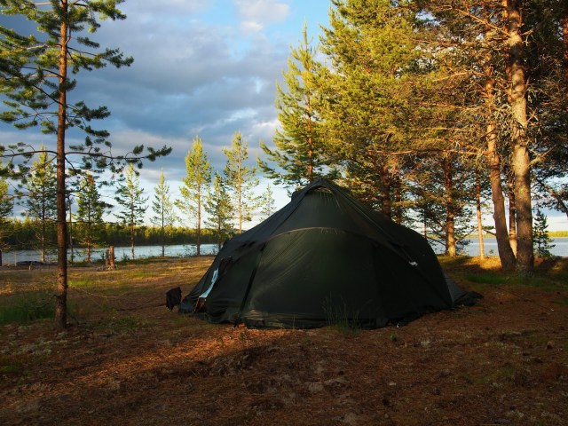 | Ensimmäinen leiritymispaikka järven rannalla oli reissun hienoimpia |