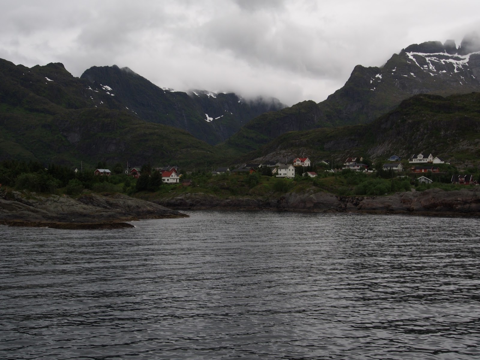 | Saapuminen Å:hon, Lofooteille tulon hetki piti ikuistaa lautan kannelta vaikkei valot ehkä ollut ihan parhaimmillaan |