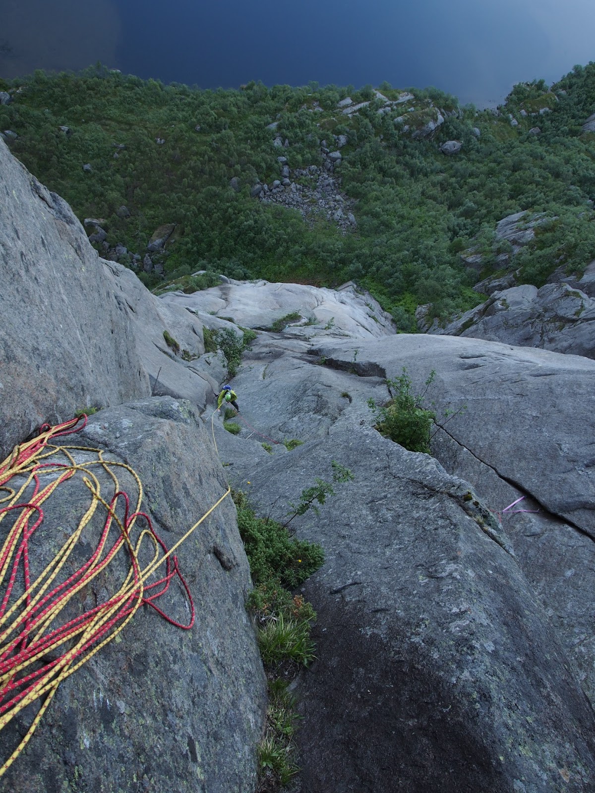 Tämän kesän uusi erikoisuus ovat ehkä kuitenkin olleet pitkittyneet kiipeilyreissut. Taisin olla mukana kolmessa yli kellonympäri operaatiossa Lofooteilla. Lisäksi Aostassa kiivetty 500 metrinen Tommy oli toisenlainen pitkä päivä. Voin suoraan sanoa, että tietyllä tavalla pidän tällaisista seikkailuista. Ei se tietysti aina hauskaa ole ja välillä tulee heikkoja hetkiä kun hommat eivät suju parhaalla tavalla, mutta vähän samalla tavalla kuin kestävyysurheilussa, on päivän jälkeen hieno fiilis. Saa haastetta niin fyysisellä kuin henkisellä puolella ja tämän kesän jäljiltä on itseluottamusta ainakin jaksamisen osalta, joka on tietysti hieno fiilis kun tällaista monipuolista liikkumista varten sitä oikeastaan nykyään treenaa. Toinen iso osa tällaista kiipeämistä on erilaisten tilanteiden päätöksenteko ja ongelmanratkaisu. Kun on vielä aika kokematon kiipeäjä omien kotikallioiden ulkopuolelle, on koko ajan paljon opittavaa. Eihän me mitään kovin vaikeaa kiivetty, mutta esimerkiksi Reinan märät släbit tai Alkoholveggenin laskeutumiset toivat hyvää kokemusta. Kaiken tämän jälkeen tietää kyllä haluavansa lisää samanlaisia seikkailuja ja tehdä ne kokonaisuuksina aina vähän paremmin.