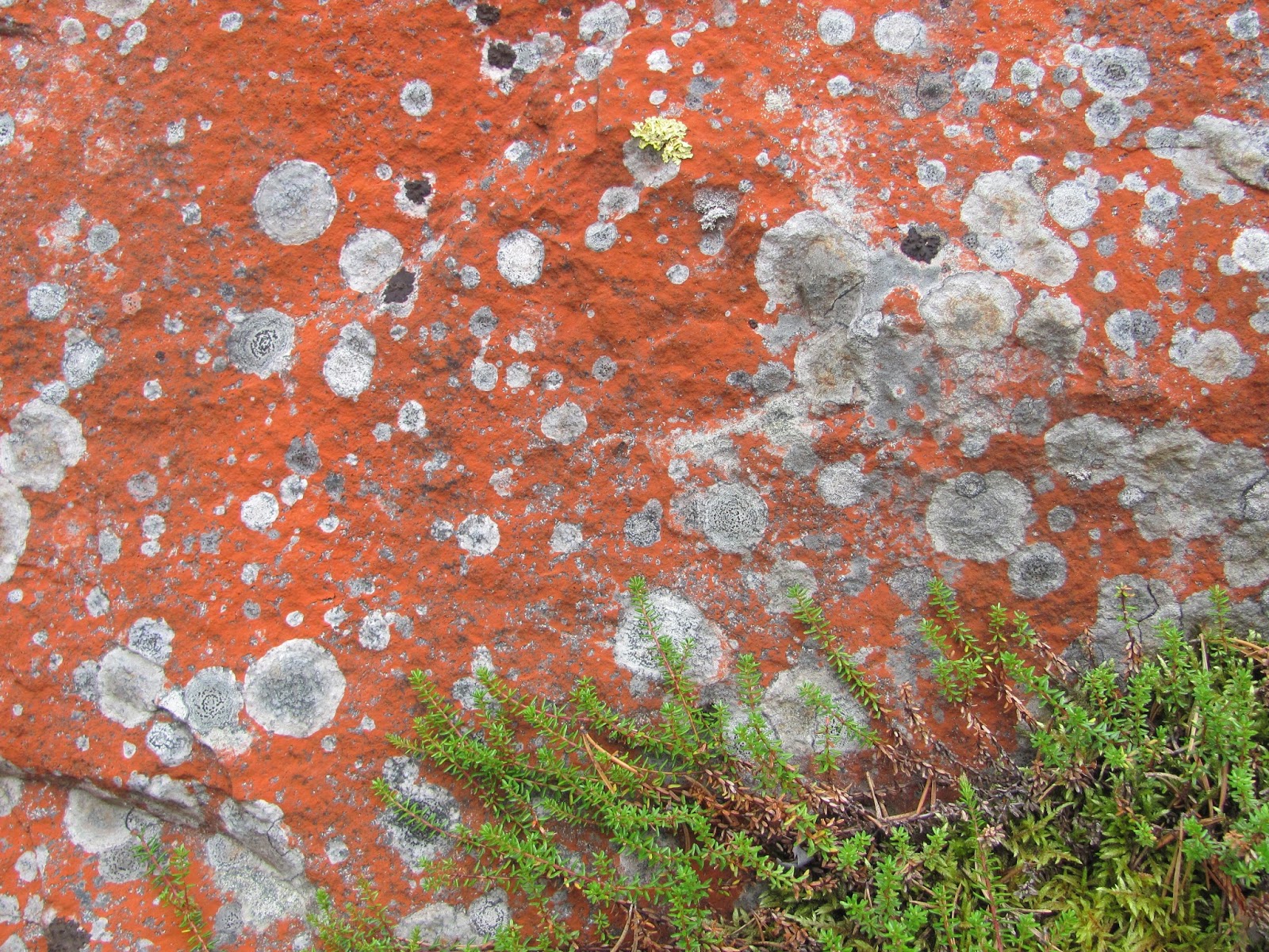 Lisää luonnon taidetta. Punainen on levää. Harmaat, mustat ja keltainen jäkälää.
