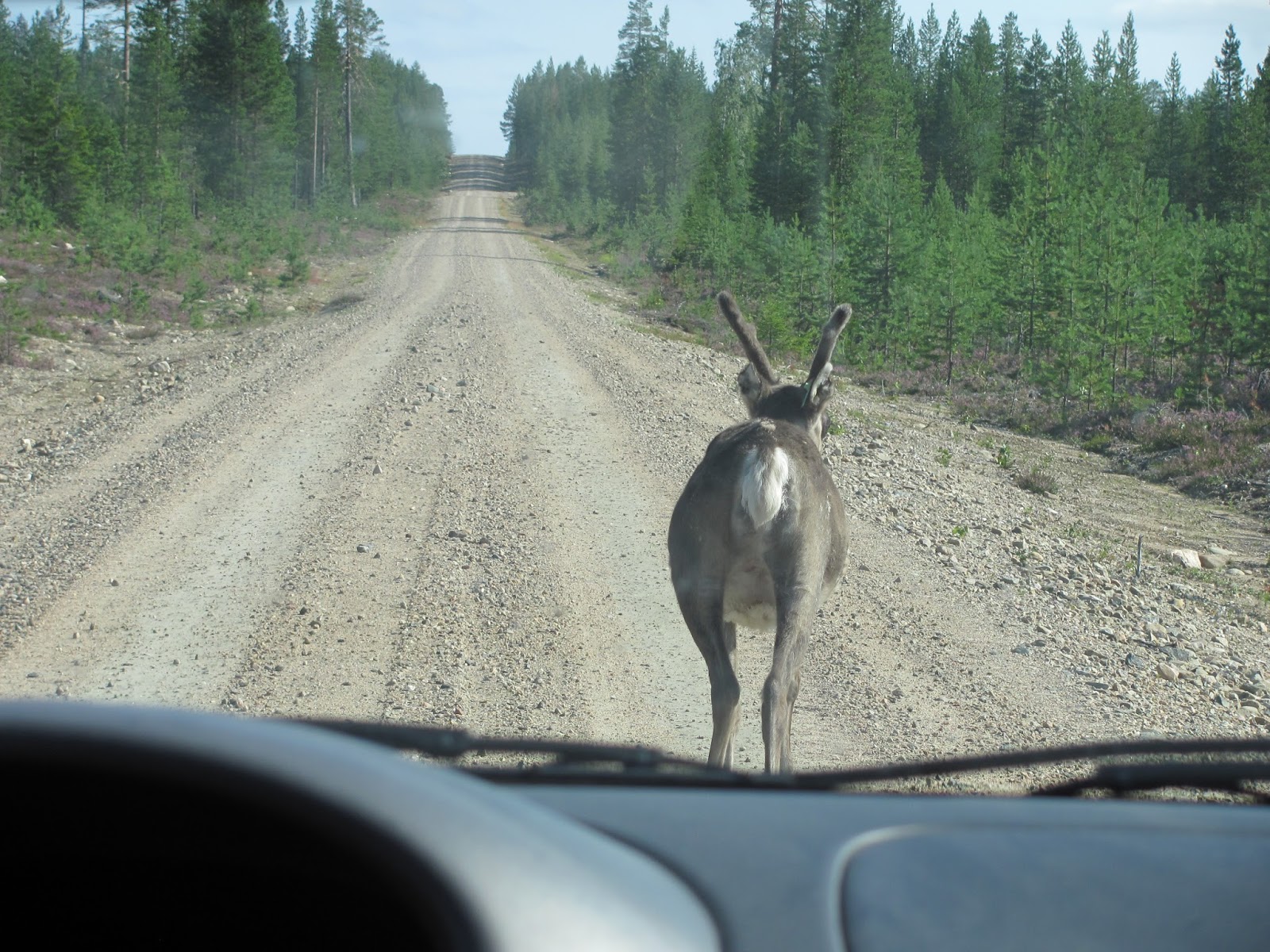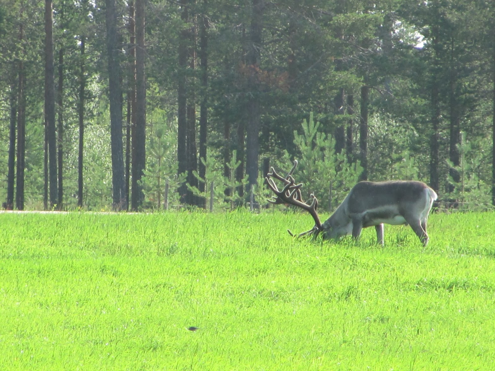 Majapaikkamme läheisyydessä (Simojärven rannassa, Impiön kylän lähellä) vaelteli kolme hirvasta, joista yhdellä komeat sarvet.