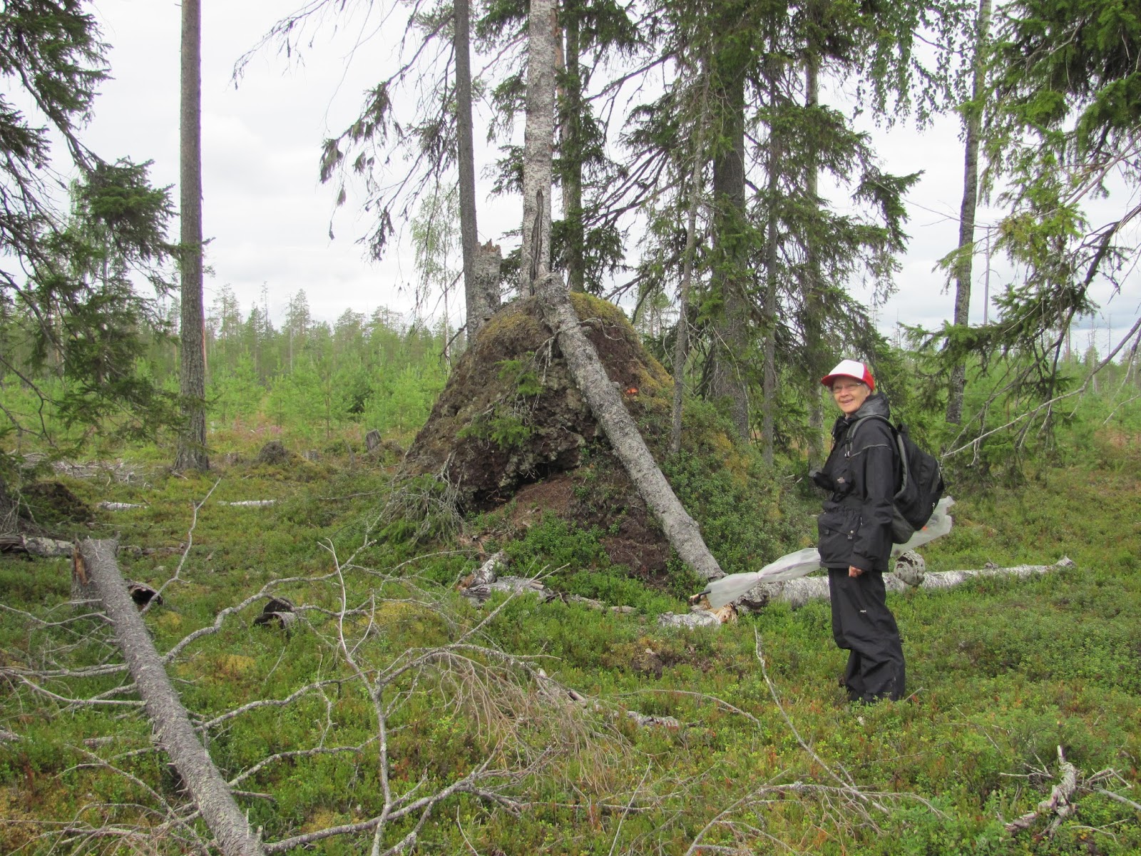 Tässä vanhassa muurahaispesässä oli ennen karhunpesä, mutta nyt se on jo luhistunut. Ei siinä varmaan ole karhu asunut enää muutamaan vuosikymmeneen.