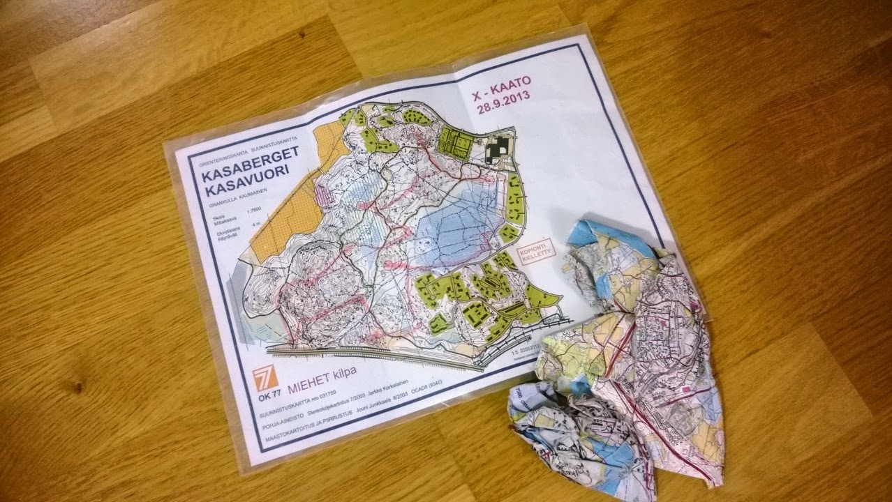 Itsellä ei ole ollut oikein koko syyskuun aikana mitenkään ihmeellinen olo: on tullut sairasteltua ja kisaa edeltäväkin viikko meni vähän niin ja näin pääosin duunin johdosta. Sen huomasi armottomasti kisassa. Jo Kasavuoressa suunnistettaessa pimeyden väistyessä alkoi tuntua ettei kaikki ole ihan niinkuin pitää. Seuraava pidempi pyöräily meni vielä jotenkuten, mutta Oittaan juoksussa olin sitten jo ihan tattis. Loppumatka meni vähän sinne päin. Maastossa pystyi tekniikan turvin pyörällä etenemään, mutta melontaan siirryttäessä ei tekemisessä ollut oikein enää voimaa ja takaisin rantaan tullessa olin sellaisessa kylmähorkassa ettei mitään rajaa. Viimeinen köysikiipeily ja eristelevyuinti meni ihan vain viran puolesta. Maalissa ei meinannut saada millään lämpöjä päälle. Nyt pari päivää myöhemmin alkaa olla normi olo, mutta aika heikossa hapessa sitä tuli oltua. Näin jälkeenpäin voi sanoa, etten ollut ehkä ihan kisa kunnossa. Lisäksi polvi on vihoitellut viime viikkoina ja sekin ärtyi kunnolla eikä vieläkään ole kiva kävellä. Täytyy ottaa nyt kunnolla lepoa ja palata kuntoilun pariin sitten kun on taas vahva fiilis.
