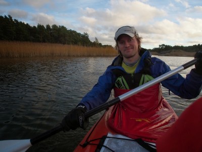 Minulla oli kurssin viimeinen luento vielä lähtöpäivänä lauantaina, mutta Mikko hoiteli sillä aikaa ruoka – ja juomaostokset joten päästiin sujuvasti tien päälle heti kun vapaus opinnoista koitti. Ajeltiin suoraan Kustaviin ja oltiin mökillä joskus seitsemän maissa illalla. Majoitus oli vuokrattu Juuvannin merenrantamökit nimisestä paikasta (www.juuvanni.fi), ja mökki tosiaan sijaitsi aivan meren rannalla harvinaisen hienolla näköalapaikalla. Kajakkeja saa vuokralle lähes suoraan mökin pihasta ja Pohjanvuoren kiipeilykalliot ovat sopivasti kävelymatkan päässä, joten puitteet monipuoliseen ulkoiluun ovat kerrassaan mainiot. Tuloiltana keskityttiin kuitenkin pelkästään nautiskeluun, tehtiin tulet takkaan ja saunottiin hyvässä puusaunassa. Linjoistaan huolehtivana miehenä Mikko oli kaseerannut kermat kauppalistasta pois, mutta pienellä improvisoinnilla sienitakkinen kuha onneksi valmistui hyvin ilmankin.
