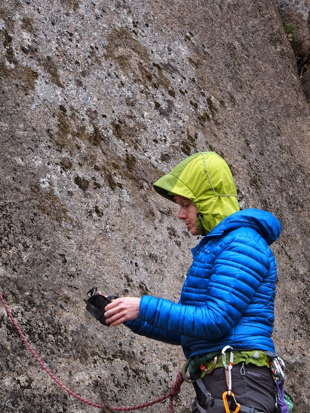 | Jammihanskat käsiin ja seinälle lämmittelemään, untsaa ei kiipeillessä todellakaan tarvittu |