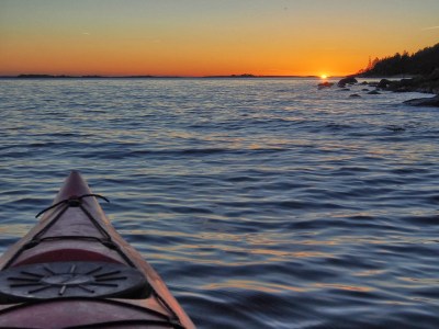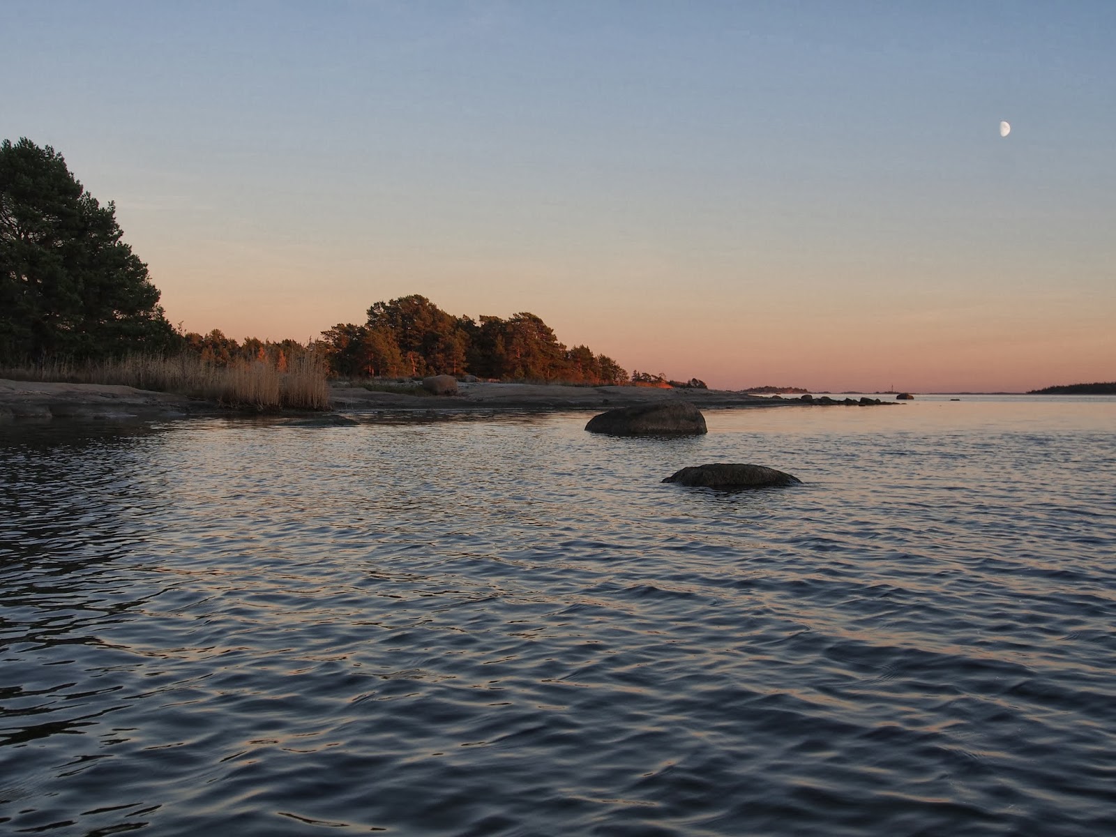 | Käytiin Santasaaren kärjessä kurkistamassa avomerelle juuri kun aurinko laski horisonttiin |