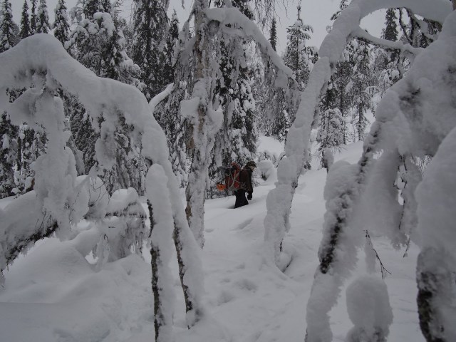 | …tai ihan vain kävelemällä lumisessa metsässä. |