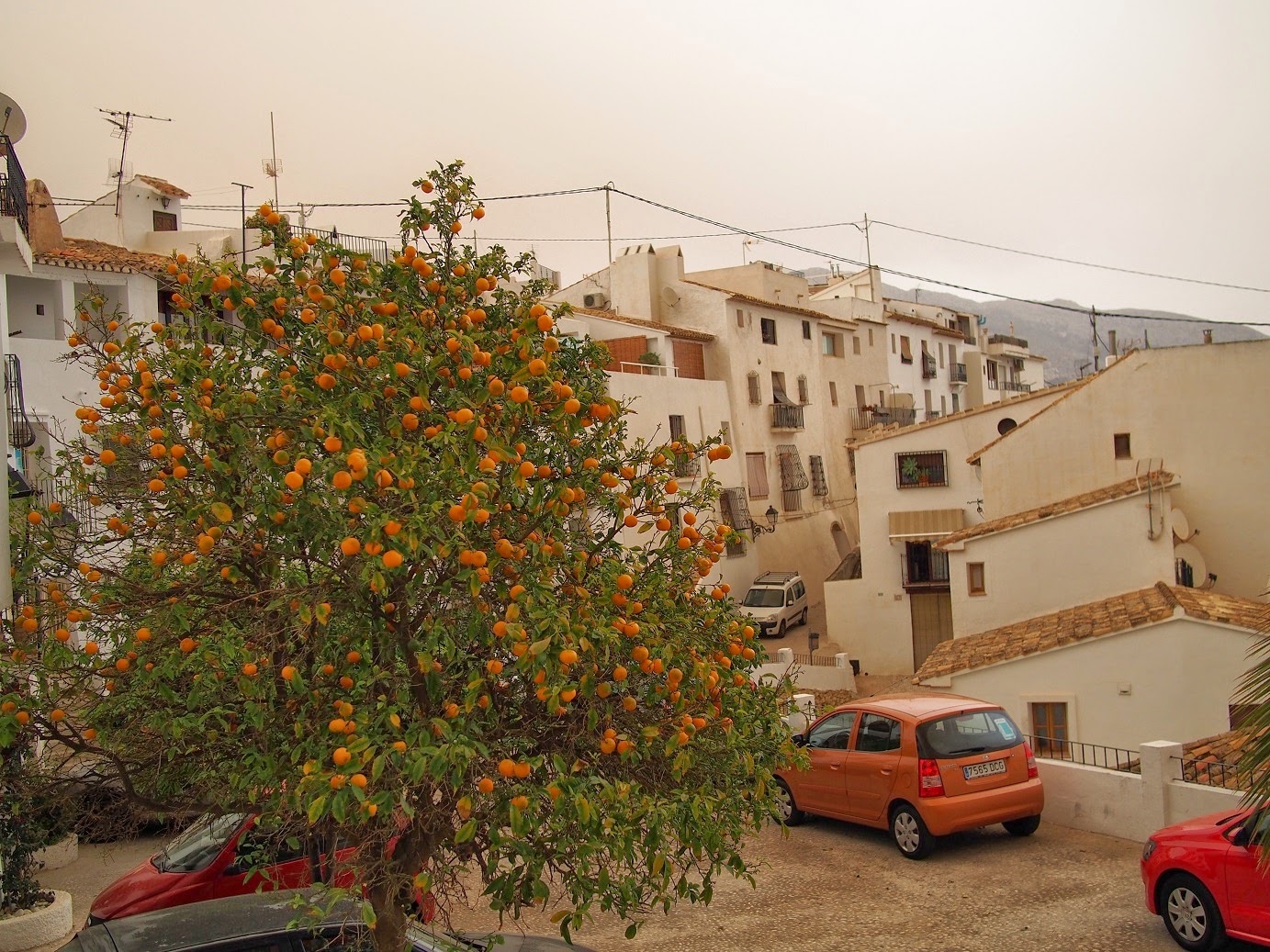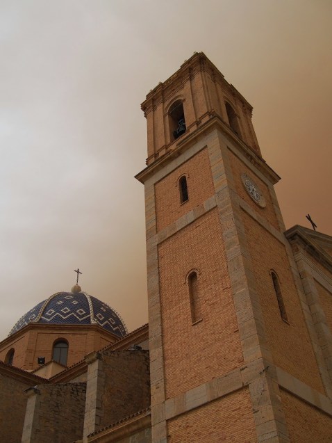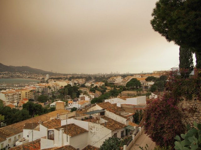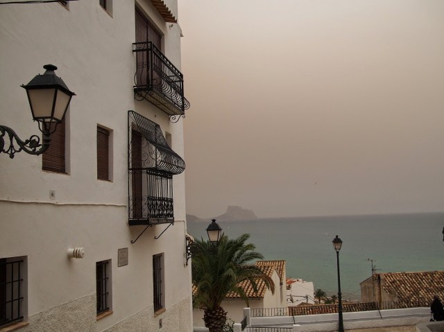 Tänään oli välipäivä ja hengailtiin Alteassa. Taivas oli pilvinen ja nyt yöllä pitäisi sataa. Keli tummeni jo illasta ja taivaalle tuli jännät ruskeat sävyt. Muutamat alas tulleet tipat olivat ruskeita. Ikkunalaudalla kuivuneet pyykit likastuivat saman tien. En tiedä mistä pölyt on pilviin kulkeutuneet, mutta kuivaa seutuahan tämä on.