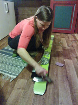 | Suksihuoltoa, äidin vanha silitysrauta oli taas kerran ahkerassa uusiokäytössä |