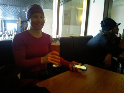 Sitkeästä pollauksesta huolimatta kaikkien ulkoilukelien oraakkeli yr.no ei kuitenkaan suostunut muuttamaan näkemystään seuraavien päivien säästä, ja tiistaina lähdettiin rannikolta sisämaahan pahinta lumisaderintamaa pakoon. Riksgränsenin hiihtokeskus sijaitsee Narvikista vain 40 minuutin ajomatkan päässä, ja tarjoaa paitsi rinteitä myös loistavia mahdollisuuksia omien laskulinjojen etsintään muualta rinteiden läheisyydestä. Uutta lunta oli edellisenä päivänä ilmeisesti satanut runsaasti, sillä tuntui että oltiin lähes ensimmäisten joukossa mesästämässä koskemattomia laskulinjoja. Kun vielä aurinkokin tuli esiin, tuli lähes välipäiväksi tuomitusta laskupäivästä niin hyvä että hissien suljettua päätettiin juhlistaa sitä paikallisella afterilla. Seuraksi saatiin suomalainen hiihdonopettaja-porukka, joilla oli meneillään useamman päivän koulutusretki rinteiden ulkopuolella laskemisesta. Ei yhtään hassumpaa ammattitaitoa syventävää koulutusta..