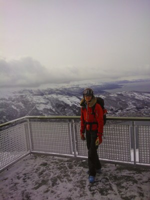 Pilvipeite ei suostunut rakoilemaan keskiviikkonakaan, joten jouduimme taas tyytymään rinteiden välissä laskuun. Edellisenä iltana Narvikin ostarilta hankituilla kompasseilla olisi toki pystynyt skinnaamaan jollekin huipulle ilman näkyvyyttäkin, mutta alas laskeminen sokkona ei olisi ollut sen eteen nähdyn vaivan arvoista. Päätimme pitää kevyemmän laskupäivän Narvikin hiihtokeskuksessa, ja pyrkiä yläasemalta takamaastoon heti jos näkyvyys yhtään paranisi. Oltiin tikkana paikalla heti kun ensimmäiset hissit käynnistettiin, ja päästiin jatkoyhteyttä ylöspäin odotellessa laskemaan kevyttä rinnepuuteria. Ylemmäs päästyämme todettiin että edellisen kerran korppu oli muisto vain, ja kaikki rinteiden välit olivat peittyneet paksuun lumeen viime öisen lumipyryn ansiosta. Alkupäivä kului siis varsin rattoisasti rinnekeskuksessakin, varsinkin kun ei paikalla huonoksi povatun sään takia ollut paljonkaan kilpailijoita.
