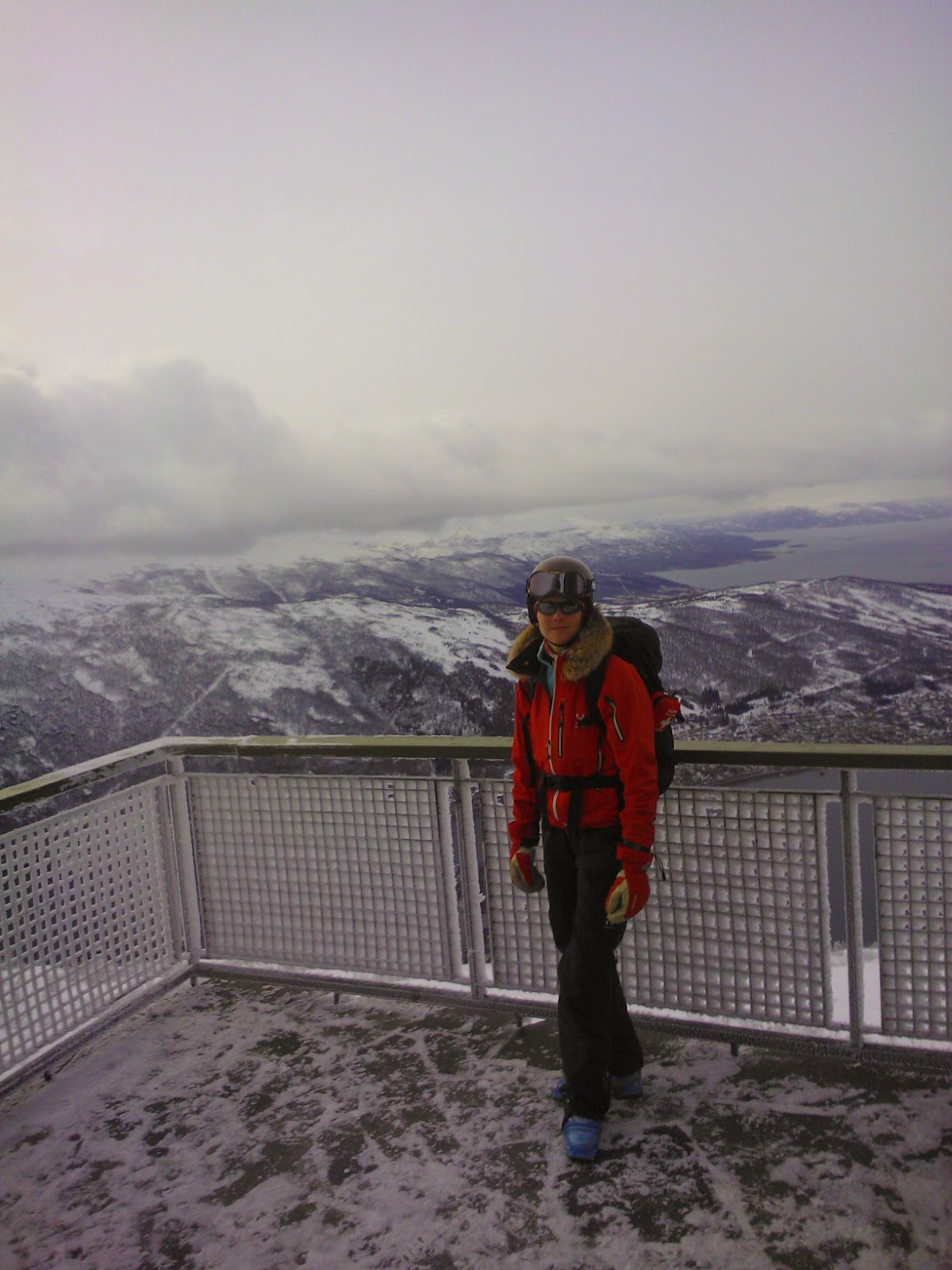 Junassa nukuttu yö ja sitä edeltäneet univelat vaativat veronsa, ja ensimmäisen hiihtopäivän liikkeelle lähtö oli hieman hitaanpuoleinen. Päätettiin yrittää lyhyempää skinnailua läheisen Beisfjordin vuonon alueella, mutta paikalle päästyämme selvisi että lumiraja oli tänä keväänä niin korkealla että puolet suunnitellusta skinnailusta olisi kankeaa hiihtomonoilla trekkausta. Kun vielä sekin vähä mitä ylempänä olisi päässyt laskemaan oli paksujen pilvien peitossa, tehtiin uudet suunnitelmat ja lähdettiin Narvikin hiihtokeskukseen hakemaan vähän tuntumaa suksiin. Rinteet olivat hyvässä kunnossa mutta niiden välissä oli pääosin korppuuntunutta lunta. Eipä tuo sinänsä itseäni alkuun niin haitannut kun tuntui koko suksien käsittely olevan ihan hakusessa pitkän tauon jälkeen. Mistään tellukäännöksistä ei kannattanut heti edes unelmoida, mutta jonkinlainen alppikäännös sentään tuli aika lailla selkärangasta hieman horjuvan ensilaskun jälkeen.