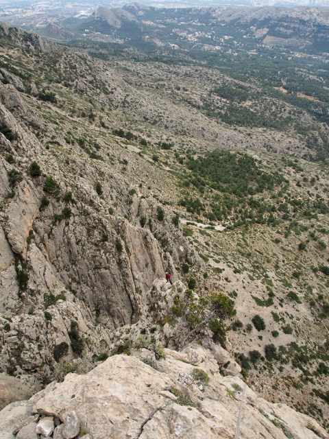 Puig Campana on aika ilmeinen kohde, jos pitkät reitit kiinnostavat. Ensinnäkin se dominoi seutua monesta suunnasta 1400 mertin huippuna ja huippu on helposti tunnistettava harjanteen loven ansiosta. Toiseksi seinämä Finestrattiin päin näyttää massiiviselta. Ehkä jopa massiivisemmalta kuin se todellisuudessa on. Puig vaan pitää kiivetä. Toki muutama muukin seinä löytyy, mutta Sellan ja Ponochin reitit ovat aika haastavaa greidiä. Campanasta on oma topo, josta löytyy kahdeksankymmentä reittiä, joten kiipeiltävää riittää. Perusreitti on pääasiassa nelosta oleva Espolón Central ja kukkulalta löytyy muutama muukin paljon kiivetty klassikko. Lisäksi laakealle varsinaiselle huipulle pääsee vaellusreittiä pitkin. Suurin osa varsinaisista kiipeilyreiteistä toppaa siis johonkin alemmaksi tai länsi harjanteen päälle joka on reilussa 1100 metrissä.