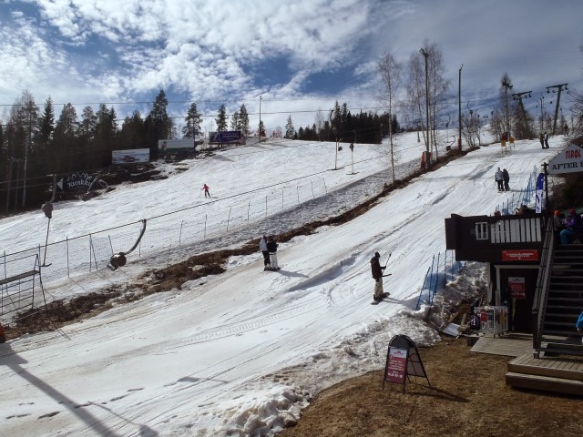 Tänä vuonna vietettiin toinen pääsiäinen putkeen Tahkolla ja keväinen Tahkon reissu oli jo kolmas peräkkäin. Tänä vuonna olosuhteet olivat kovin erilaiset kuin aiempina vuosina. Kahtena viime talvena on Tahkolla ollut vielä täysi talvi, lunta on riittänyt ja jäät ovat kantaneet. Toisin oli nyt. Lunta näkyi vain rinteissä ja lämpötila huiteli +10 asteessa.