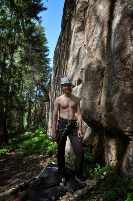 | Oma varsinainen juhlahetki oli kuitenkin nelosen trädi nimeltä Kesäpäivä. Viisi vuotta sitten vappuna se oli ensimmäinen ulkona kiipemäni reitti. Mulla on jossain vastaava kuva viiden vuoden takaa. Suht samannäköistä menoa. Reittejä ja kokemusta on takana jo aika paljon, mutta esimerkiksi Hyttyskalliolla kiivetään vieläkin samoja reittejä. |