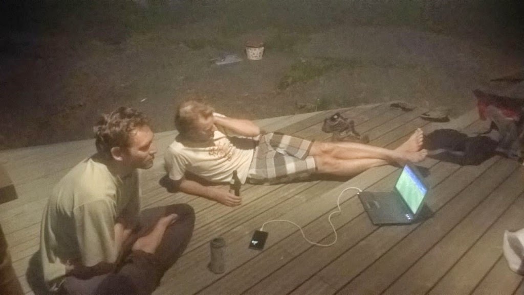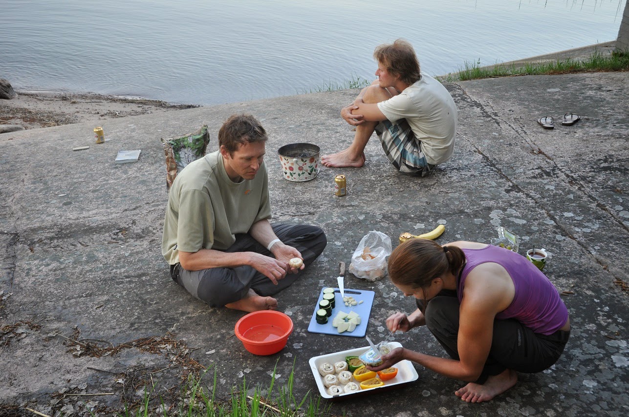 | Toisena iltana tehtiin kaikkea kasviksesta ja tuoremakkaraa. Kokkausmiljöö melkein kuten siinä rantaruotsalaisten safkaohjelmassa. |