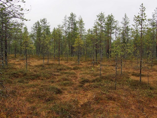 | Aika keskivertonäkymää Kainuun soisista metsistä. Juoksualusta on pehmeä ja monesti kostea. |