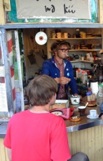 …ja hörppiä limua Käpylän puukkarilla. Laitilan klassikkolimu 2,5 ja tuplaespresso 1,5 egeä. Jäätelöäkin olisi ollut saatavilla, vaan eipä ollut käteistä. Plakaatin mukaan paikka on auki perjantaisin kasiin, mutta eipä tuolla taideta paljon kelloja ja kalentereita tuijotella