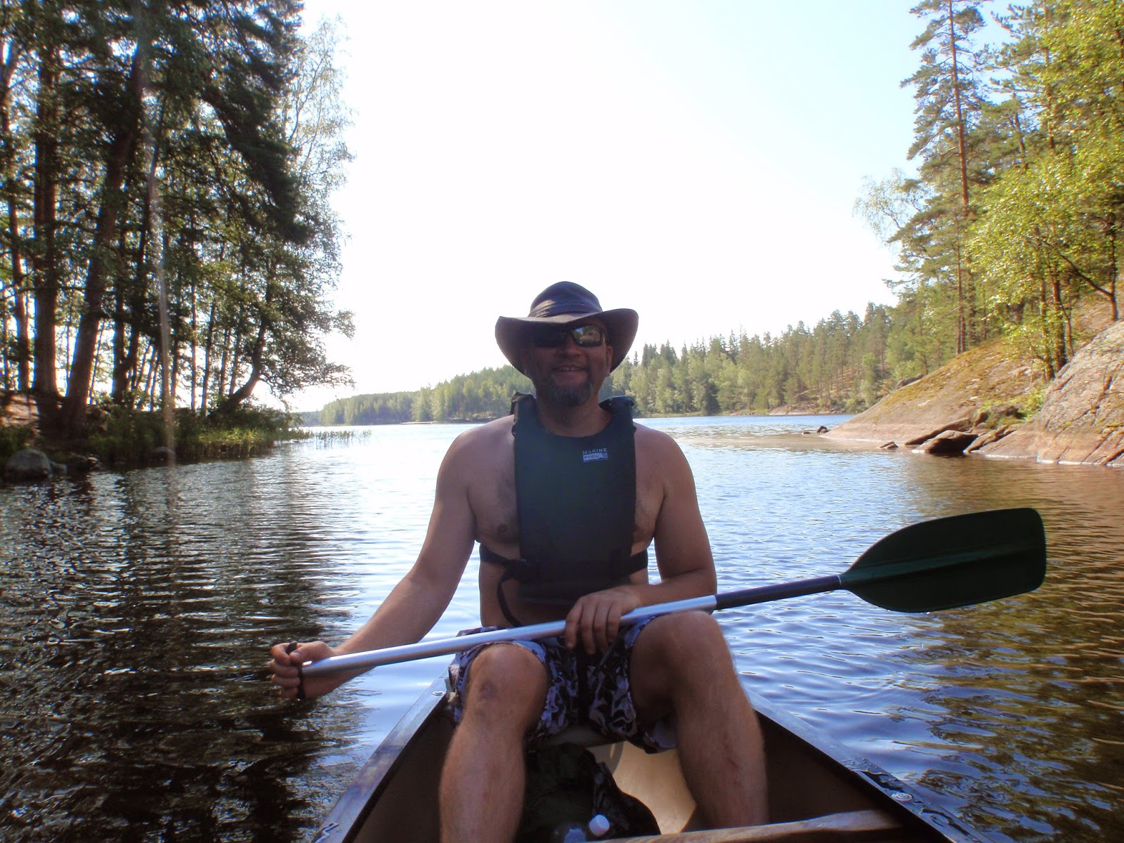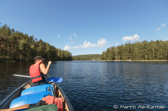 Heinä-elokuun vaihteen helteissä Repovesi oli yllättävänkin rauhallinen retkikohde. Toki Lapinsalmessa väkeä riitti, mutta muuten tunnelma oli varsin erämainen. Kanootti otettiin Hillosensalmelta, joka on erinomainen lähtöpiste Repovedelle.
