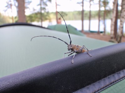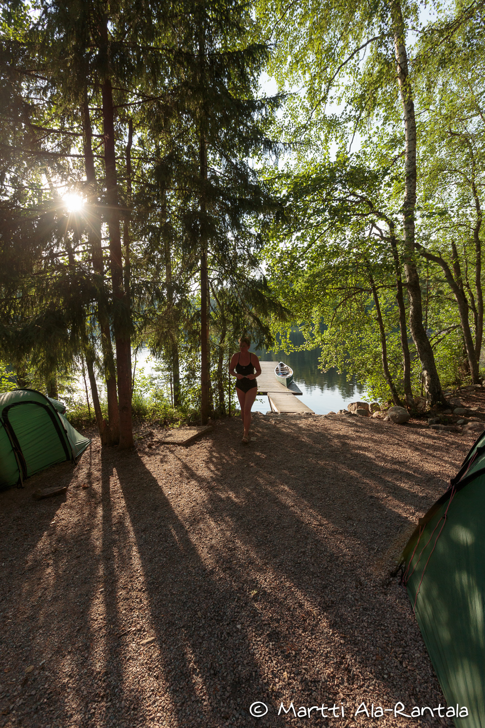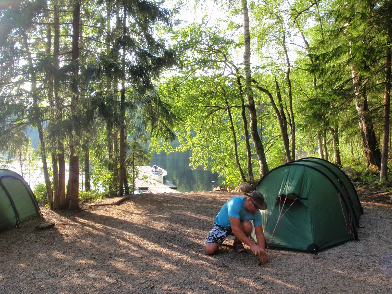 Teltan pystytystä ja uimista Kuutinkanavalla.