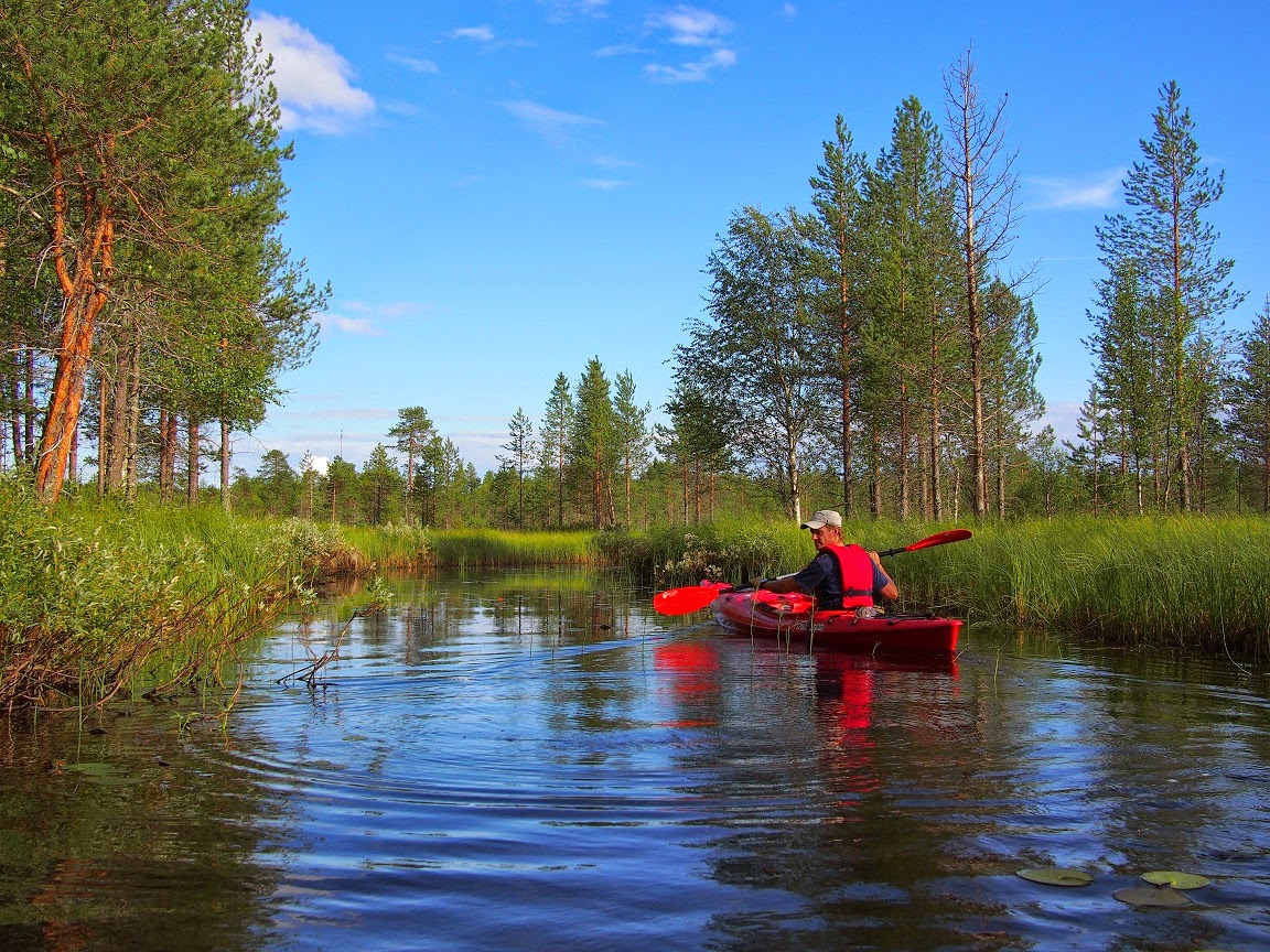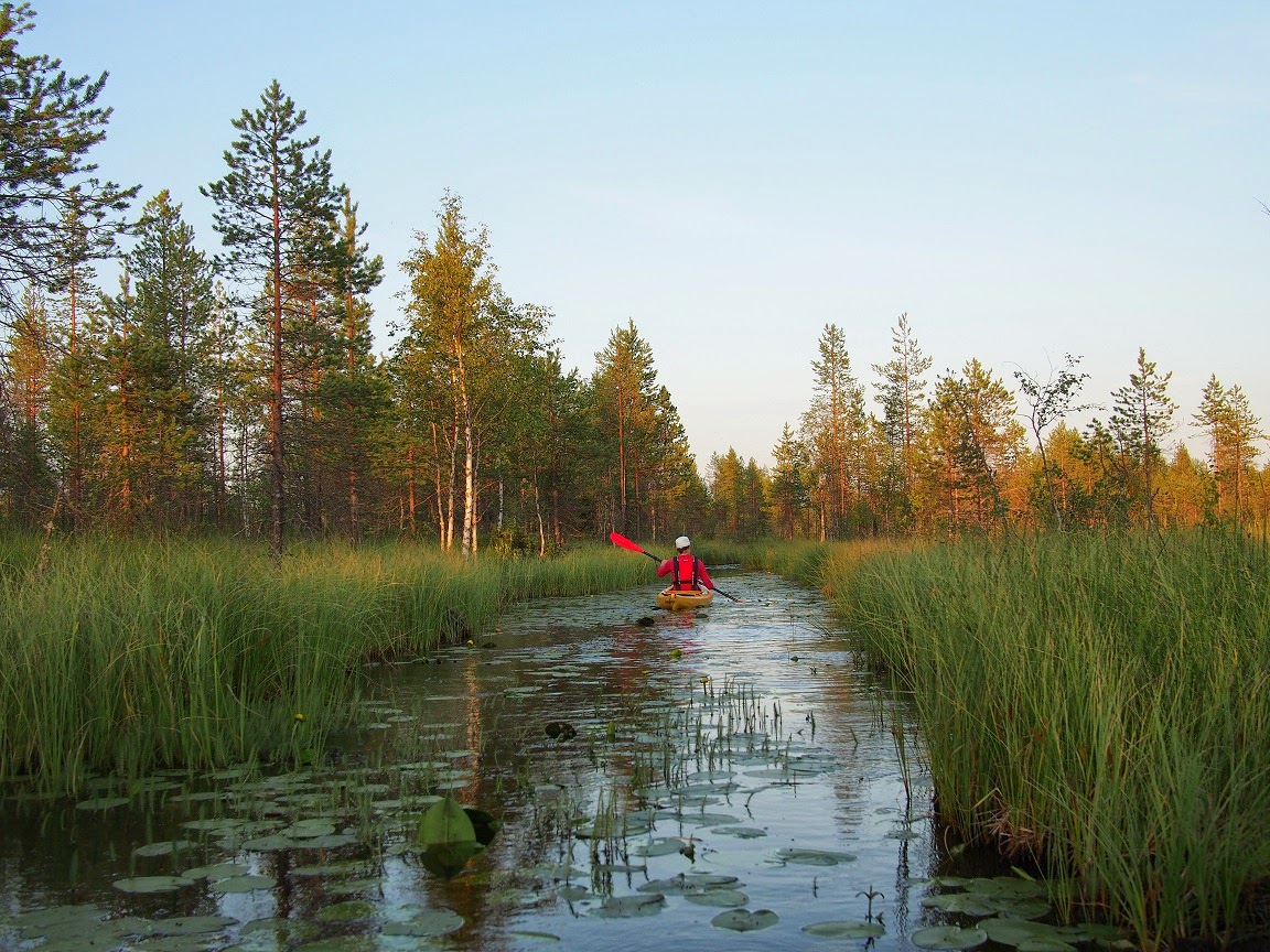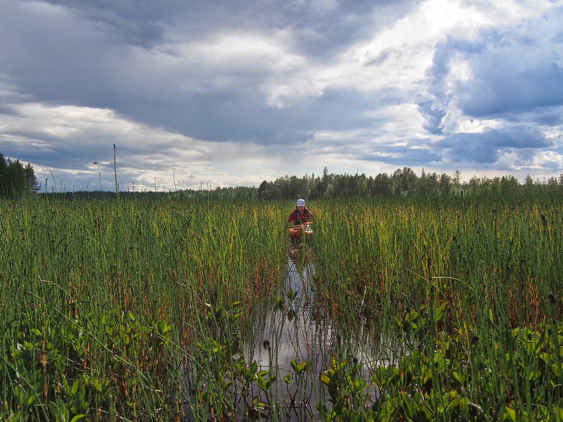 | Suolla oli mukavaa meloa pitkin leveää uomaa, ja suopursu tuoksui paikoitellen voimakkaasti. |