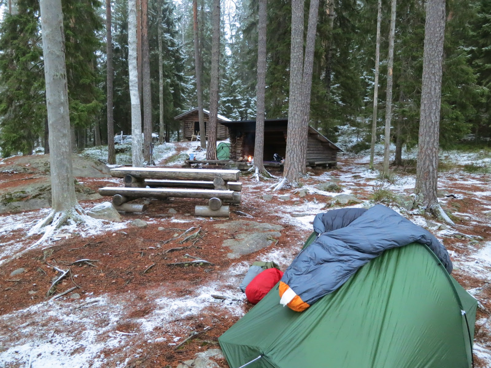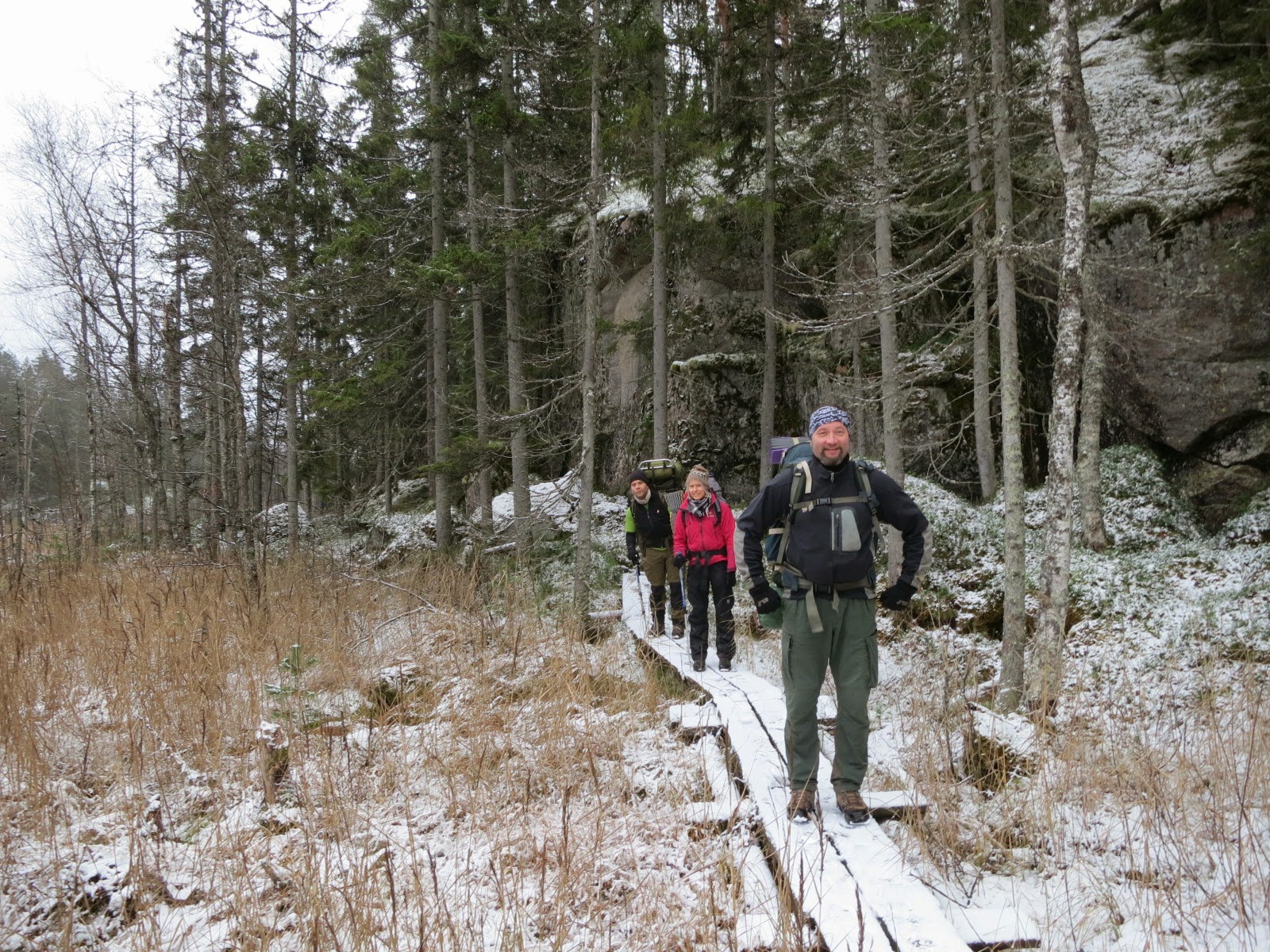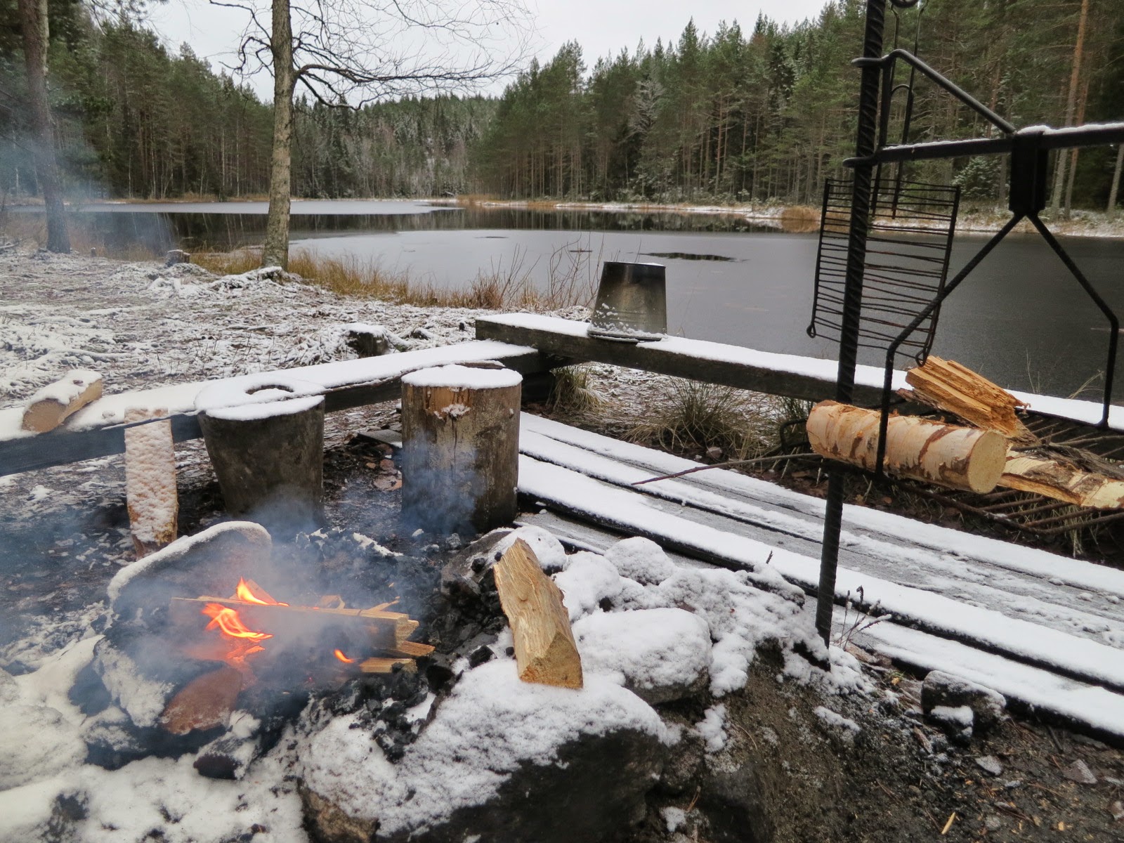 Alan todella pitää syystalven retkeilystä. Tai mitä tämä marraskuu nyt oikein onkaan. Tavallinen hieman harmaa marraskuinen viikonloppu on ihan parasta retkeilyaikaa – lämpötila on juuri sopiva liikkumiseen. Ja kun pimeä tulee ajoissa, niin ehtii jorista niitä näitä pitkän illan nuotiolla. Ja laitella alkupalat, juustofonduet ja jälkkärit. Ja välipalamakkarat. Mikäpä sen rentouttavampaa näin kaamoksen kynnyksellä.