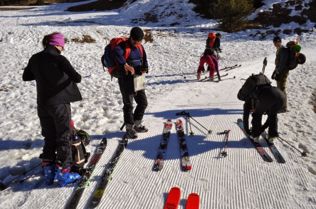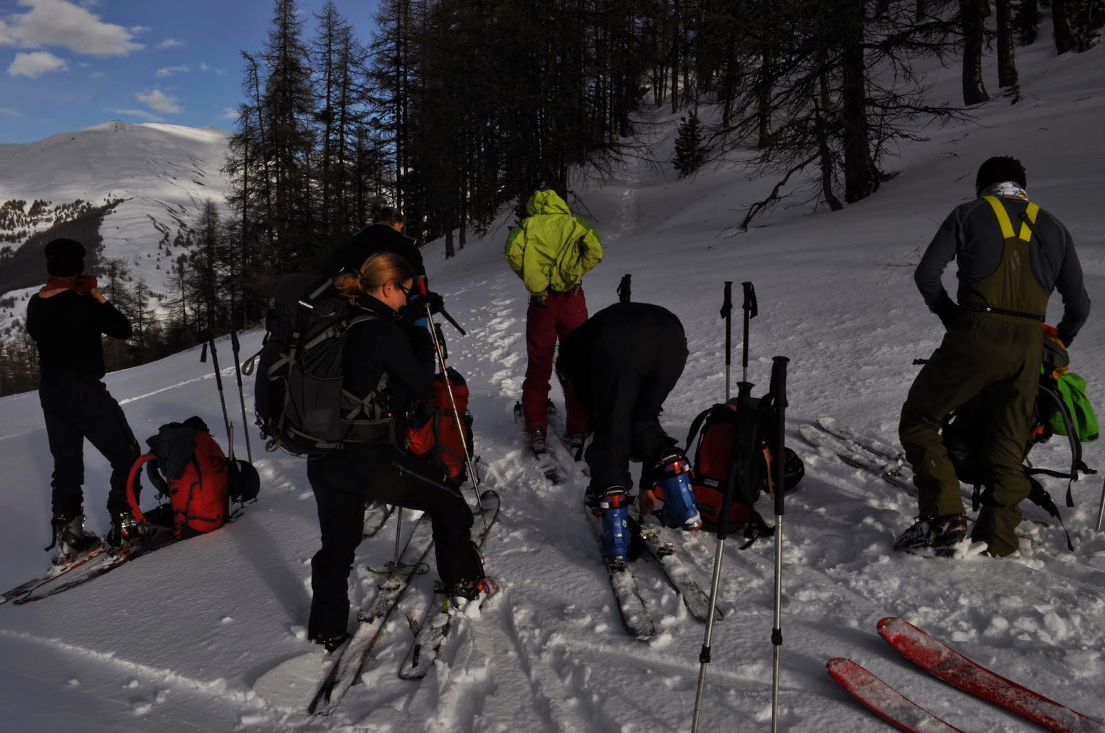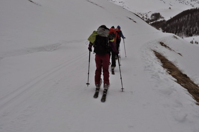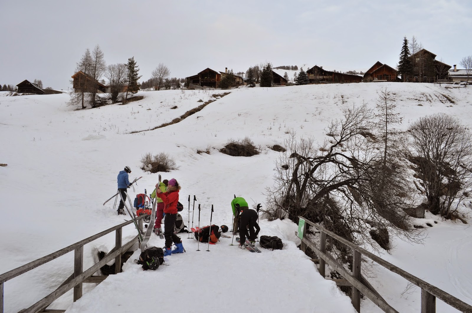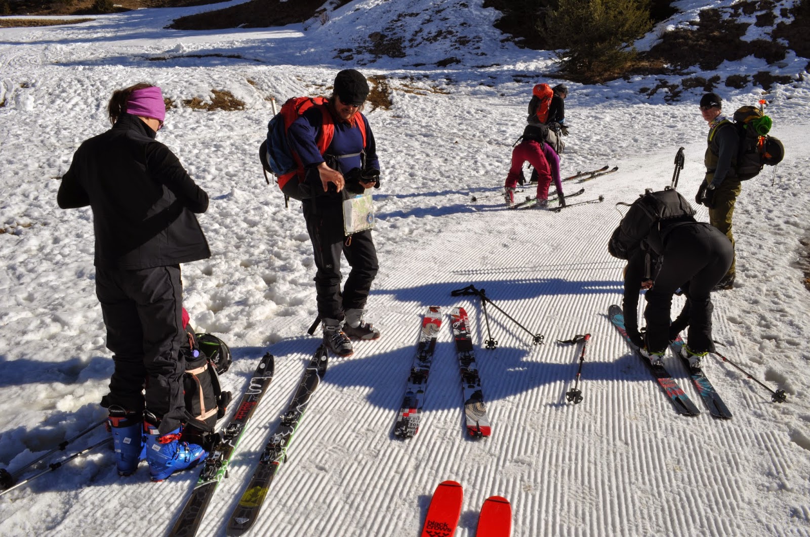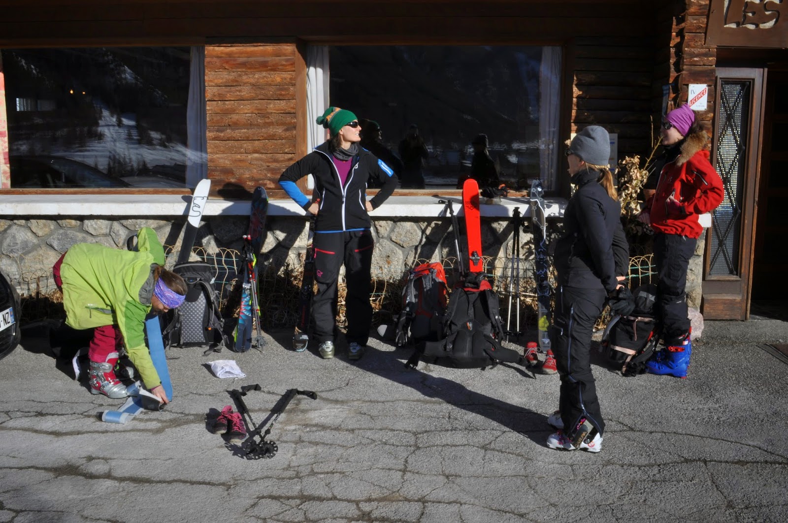 Katastrofaalisen lähestymismatkan ja mutkikkaan kamojen keräysrundin jälkeen päästiin alkuperäisen sunnuntain sijasta maanantaina suksille oppaamme Petter Reutterin siipien suojaan. Tosin ihan kommelluksista ei mennyt viimeinenkään etappi suksille. Ensin yritettiin tapaamispaikalle kesätien kautta, eli col oli talvella suljettu…sitten tuli kirjoitettua navigaattoriin Arvieux’n sijaan Avrieux, ja oltiin hyvää vauhtia menossa takaisin Italiaan… No lopulta oppaamme Petter ilmoitti uuden tapaamispaikan, Ceillacin kylän lähellä sijaitsevan pienen hiihtokeskuksen, jonne jopa osattiin ilman enempiä vastoinkäymisiä perille…