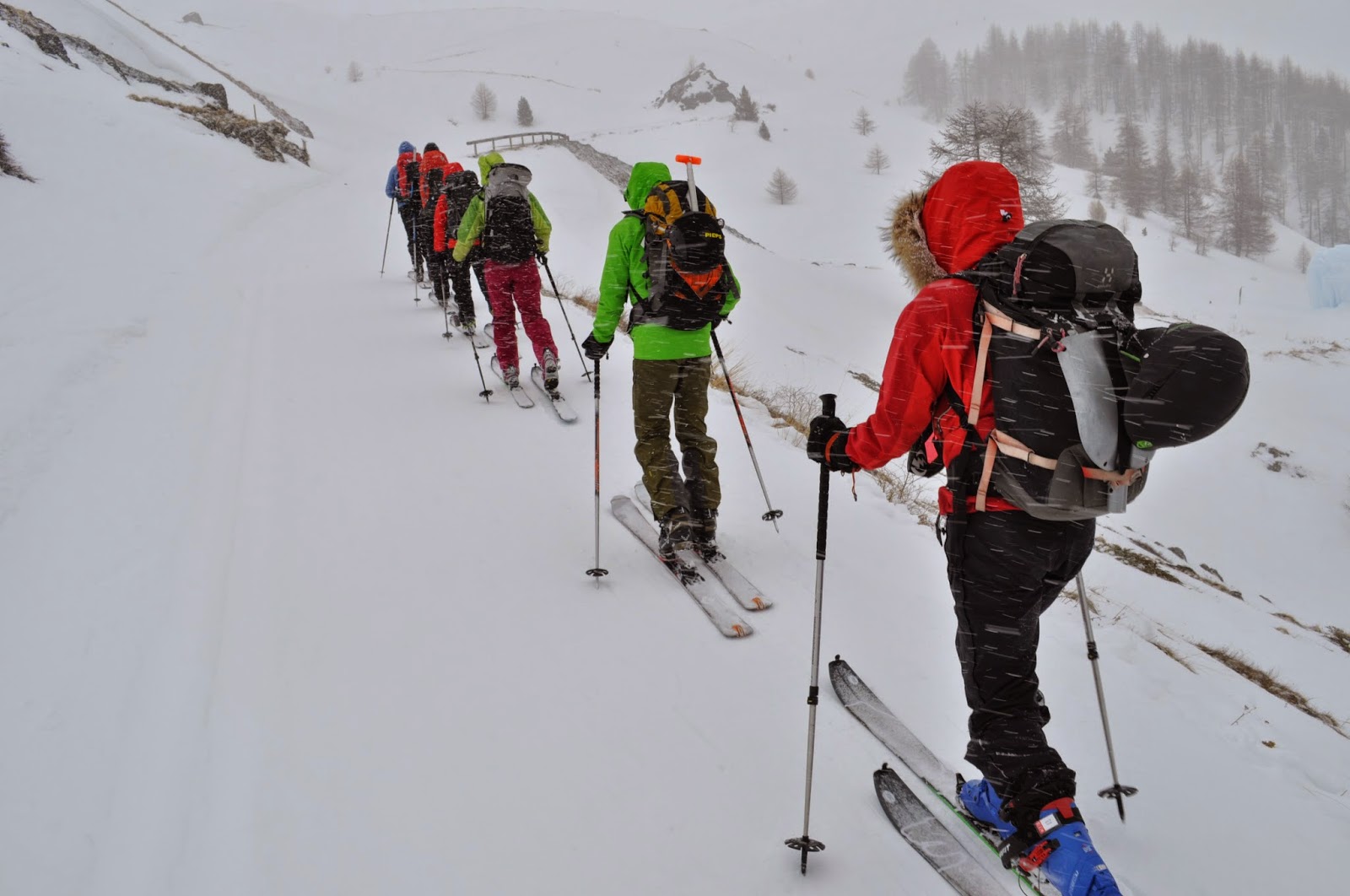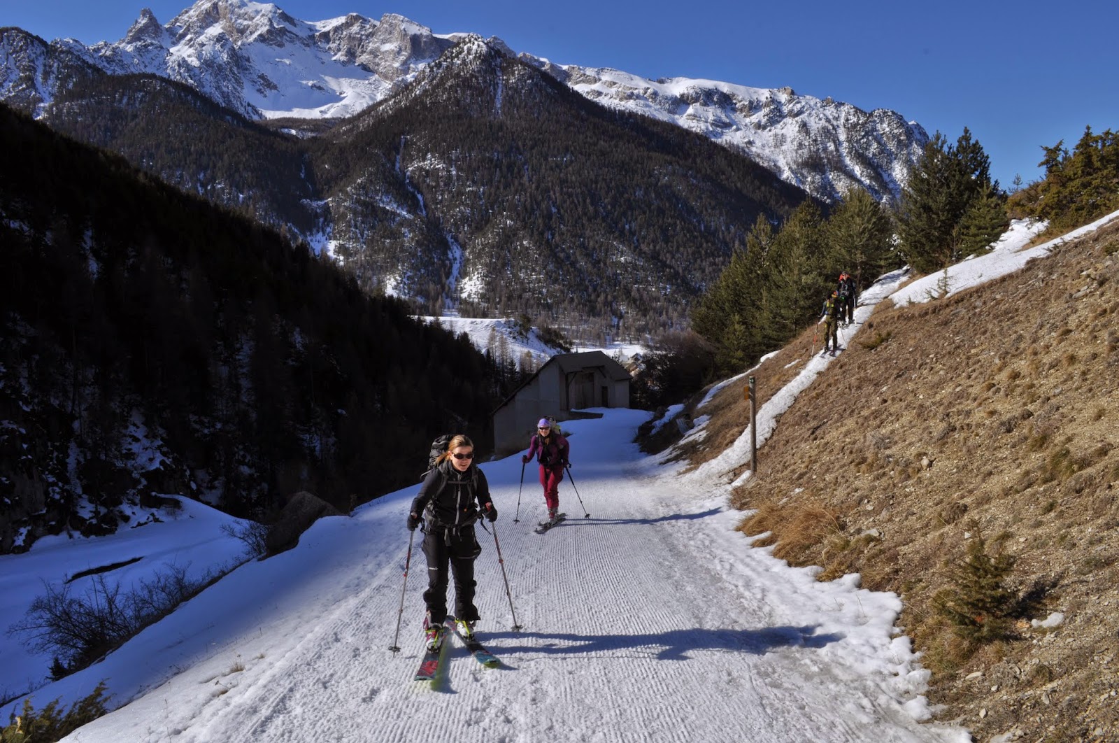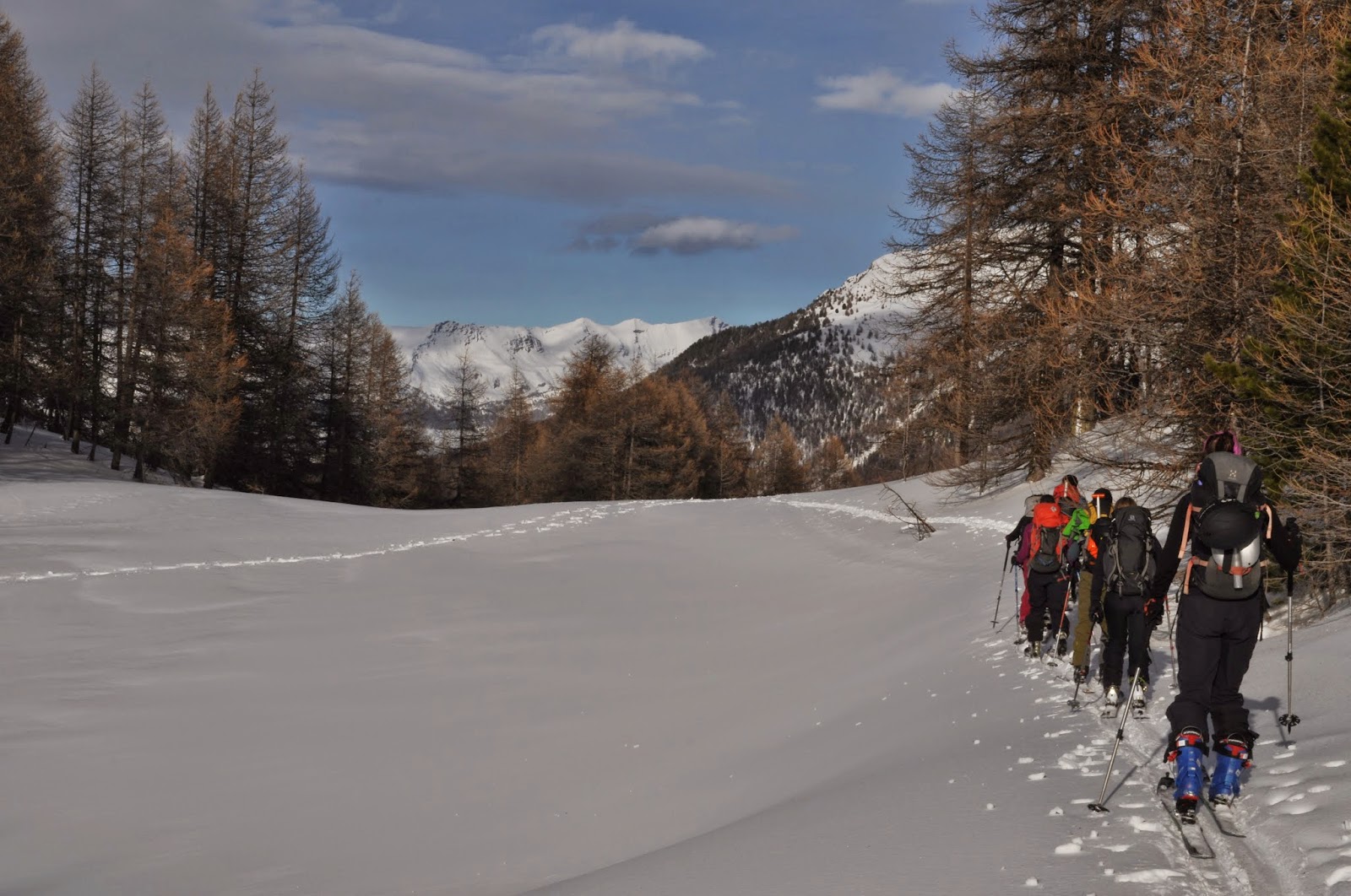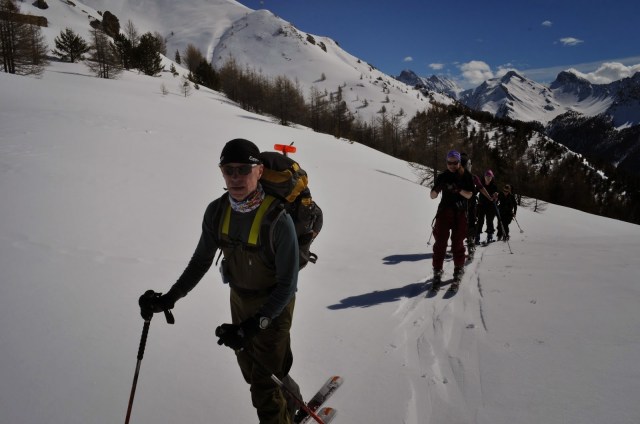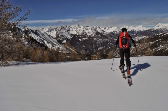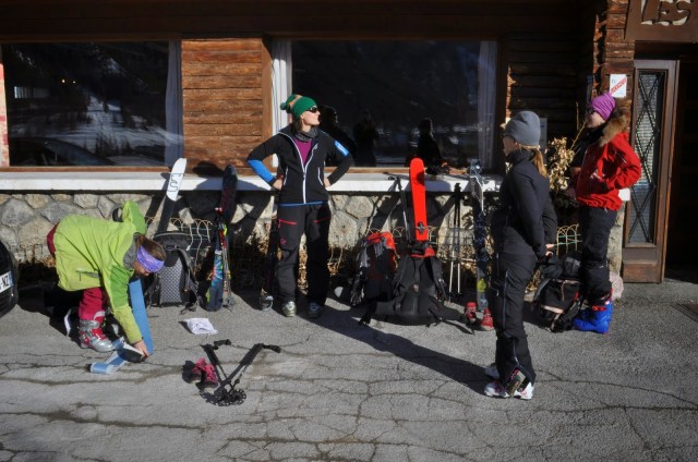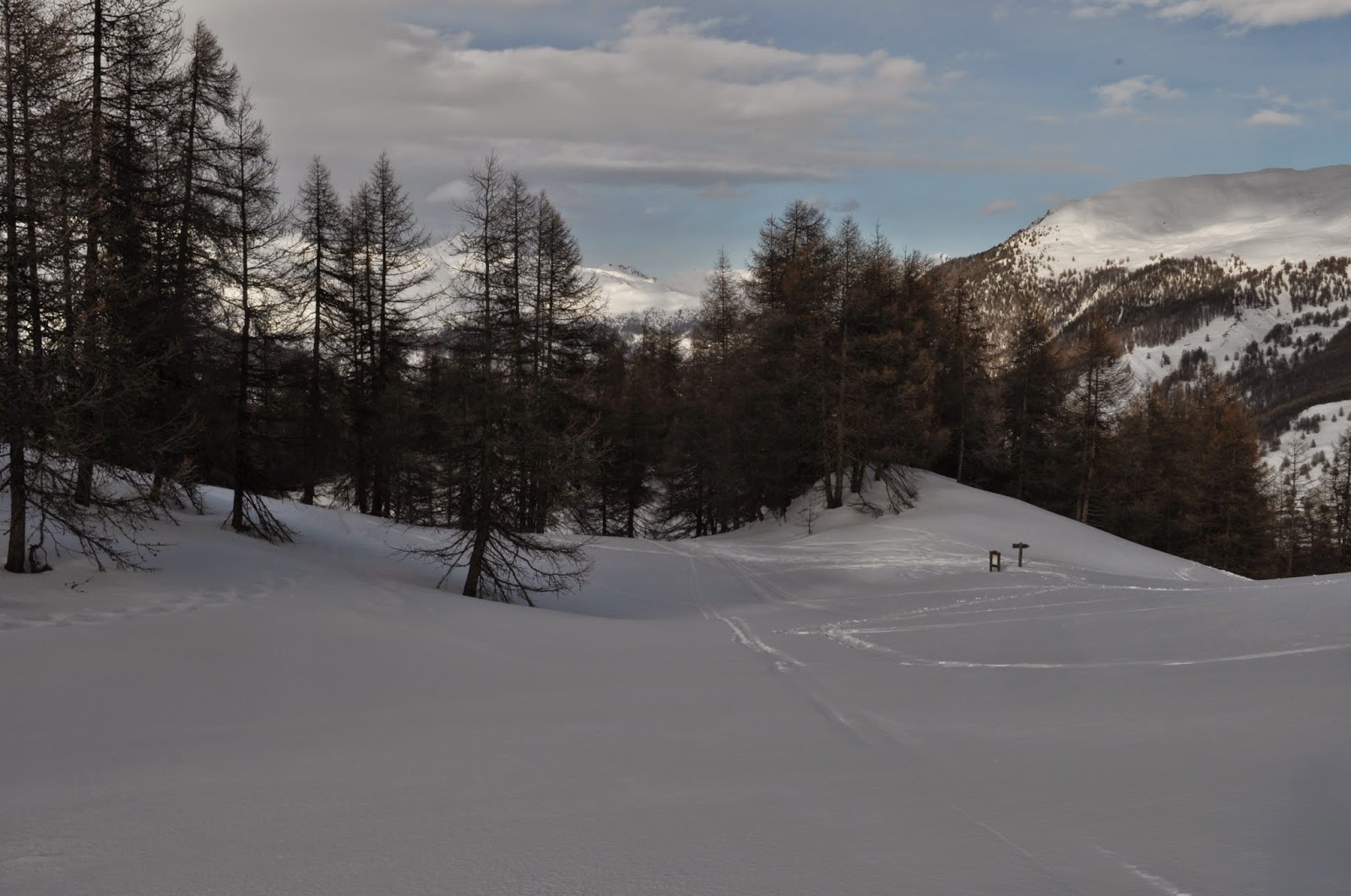 Katastrofaalisen lähestymismatkan ja mutkikkaan kamojen keräysrundin jälkeen päästiin alkuperäisen sunnuntain sijasta maanantaina suksille oppaamme Petter Reutterin siipien suojaan. Tosin ihan kommelluksista ei mennyt viimeinenkään etappi suksille. Ensin yritettiin tapaamispaikalle kesätien kautta, eli col oli talvella suljettu…sitten tuli kirjoitettua navigaattoriin Arvieux’n sijaan Avrieux, ja oltiin hyvää vauhtia menossa takaisin Italiaan… No lopulta oppaamme Petter ilmoitti uuden tapaamispaikan, Ceillacin kylän lähellä sijaitsevan pienen hiihtokeskuksen, jonne jopa osattiin ilman enempiä vastoinkäymisiä perille…