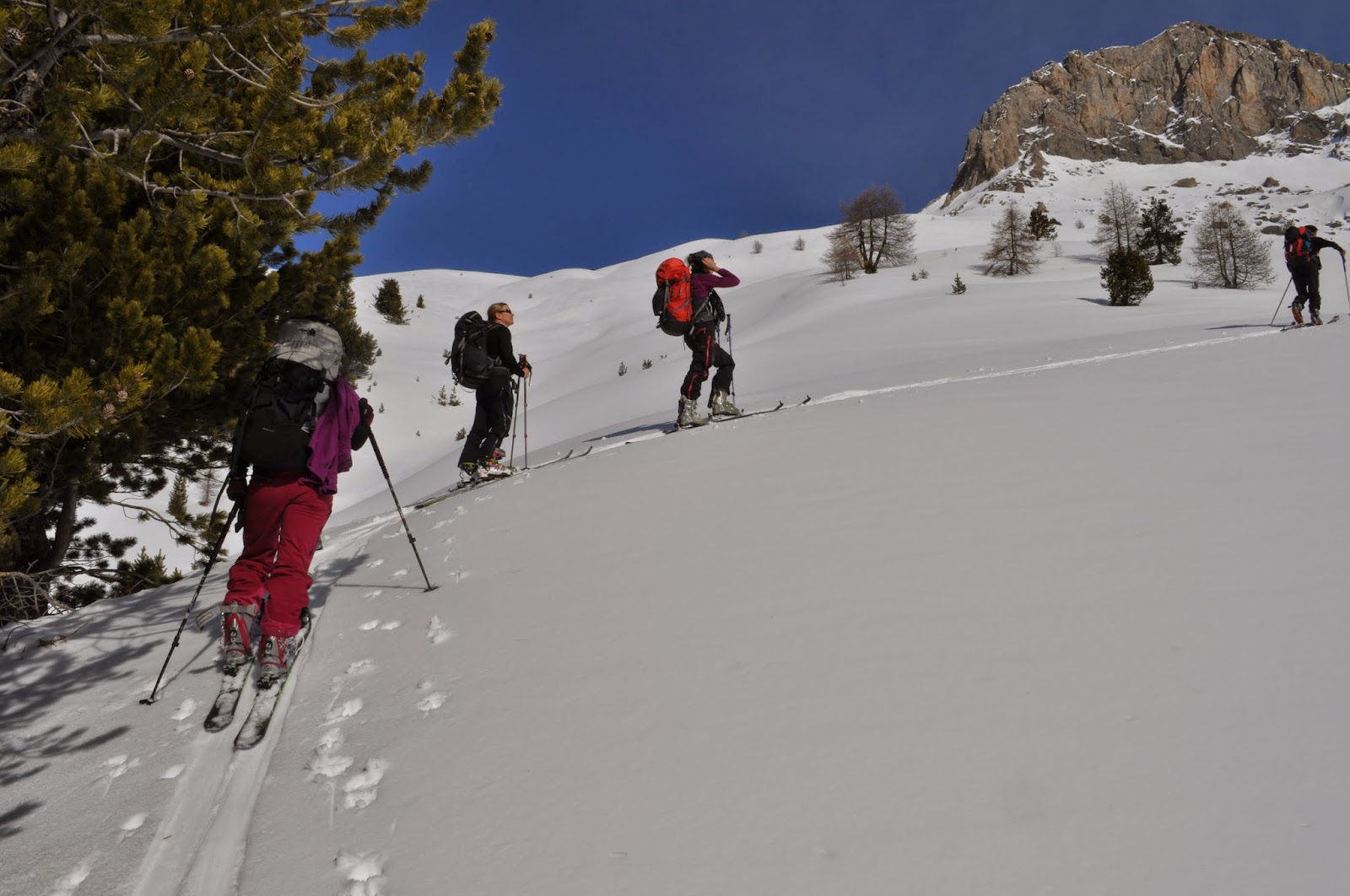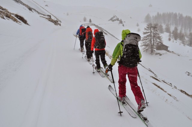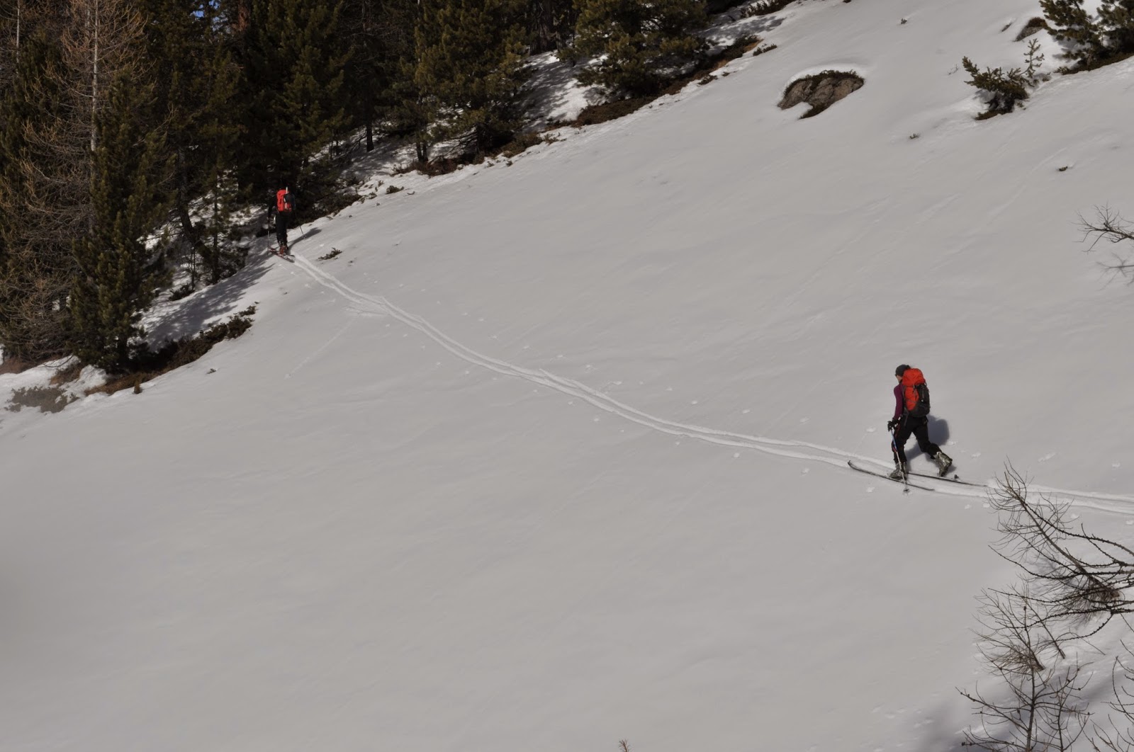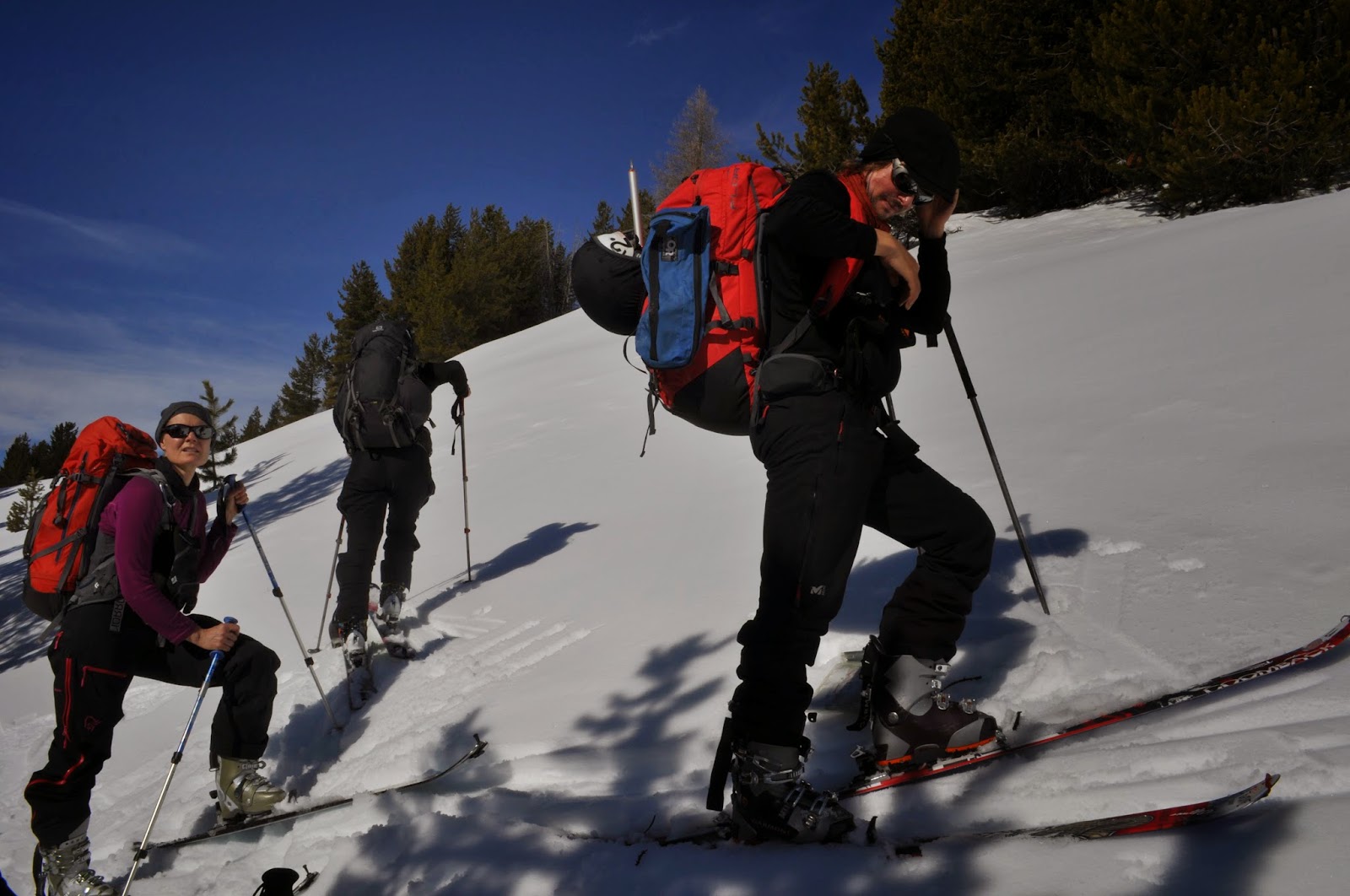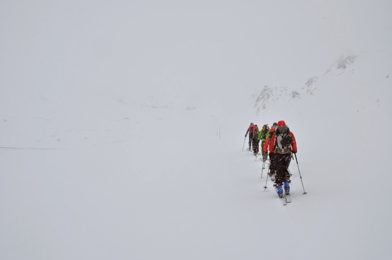 Katastrofaalisen lähestymismatkan ja mutkikkaan kamojen keräysrundin jälkeen päästiin alkuperäisen sunnuntain sijasta maanantaina suksille oppaamme Petter Reutterin siipien suojaan. Tosin ihan kommelluksista ei mennyt viimeinenkään etappi suksille. Ensin yritettiin tapaamispaikalle kesätien kautta, eli col oli talvella suljettu…sitten tuli kirjoitettua navigaattoriin Arvieux’n sijaan Avrieux, ja oltiin hyvää vauhtia menossa takaisin Italiaan… No lopulta oppaamme Petter ilmoitti uuden tapaamispaikan, Ceillacin kylän lähellä sijaitsevan pienen hiihtokeskuksen, jonne jopa osattiin ilman enempiä vastoinkäymisiä perille…